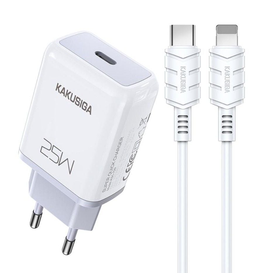 Încărcător Rețea 25W PD Fast Charge, KSC-814, Cablu Type-C la Lightning Inclus, Alb Engros