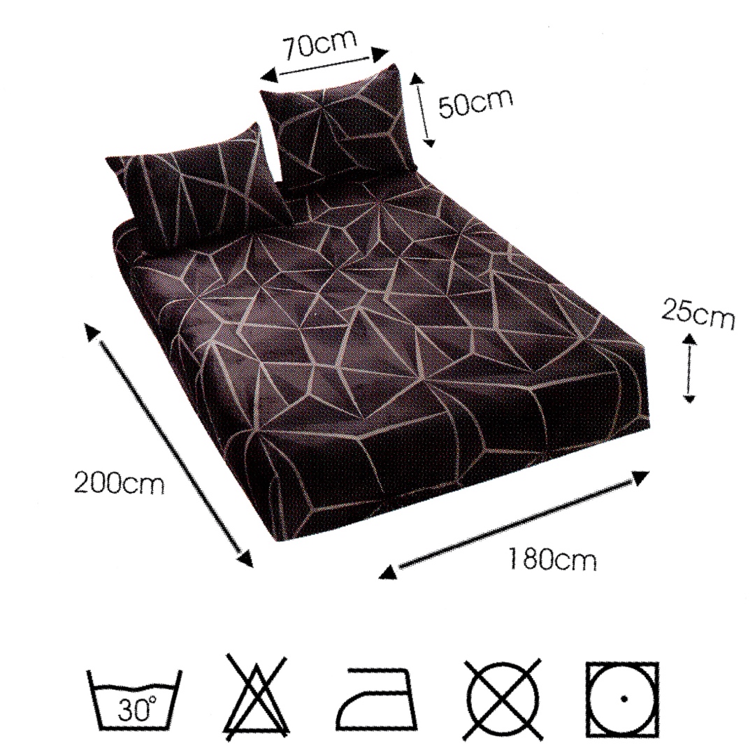 (OFERTA 3 la 199 Lei) Cearsaf cu Elastic Cocolino 180x200x25 cm – Set cu 2 Fete de Perna, Gros si Pufos, Calitate Premium pentru Confort si Eleganta, Negru, Gri, Forme Geometrice