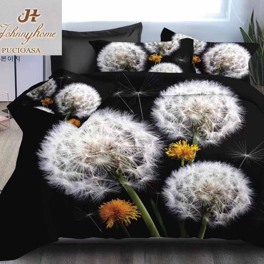 (OFERTA 3 la 199 Lei) Lenjerie pat dublu, 4 piese, IMPRIMEU 3D Multiplicat Multiplicat, Microfibra, Negru, papadii