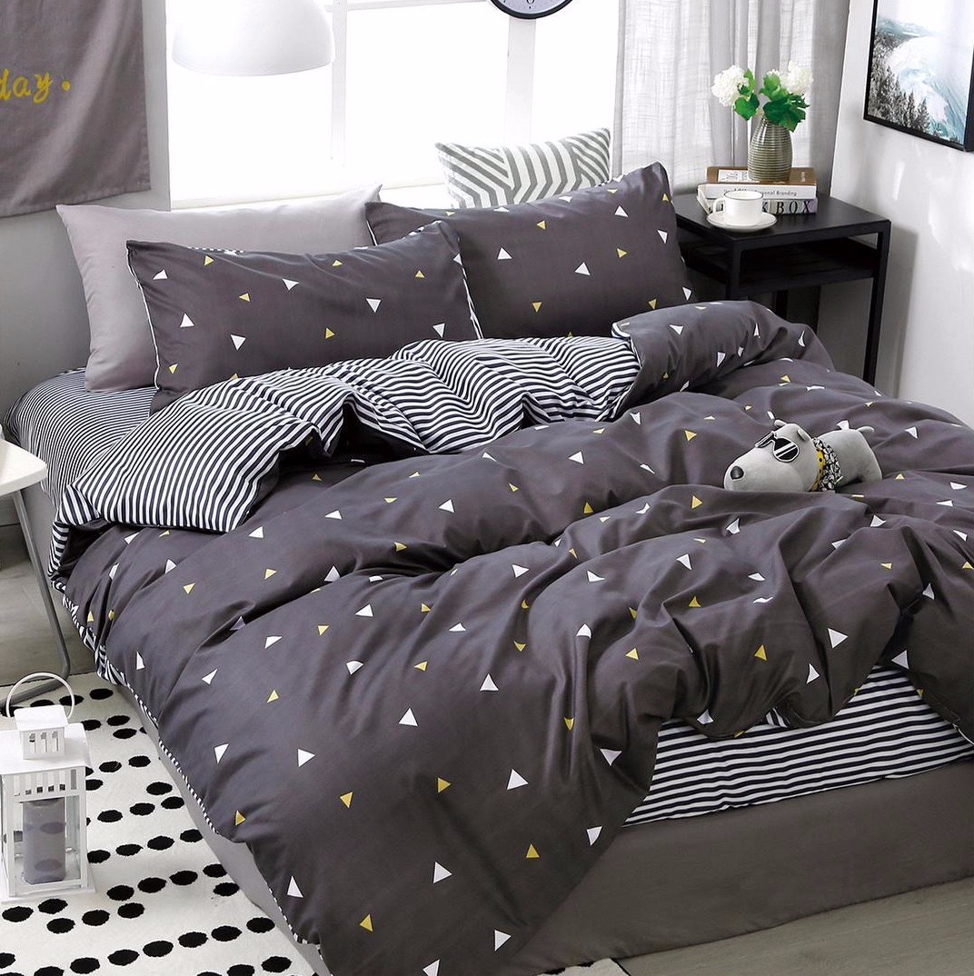 (OFERTA 3 la 199 Lei) Lenjerie pat dublu cu doua feţe, bumbac satinat, 4 piese, Gri, forme geometrice