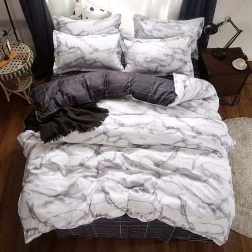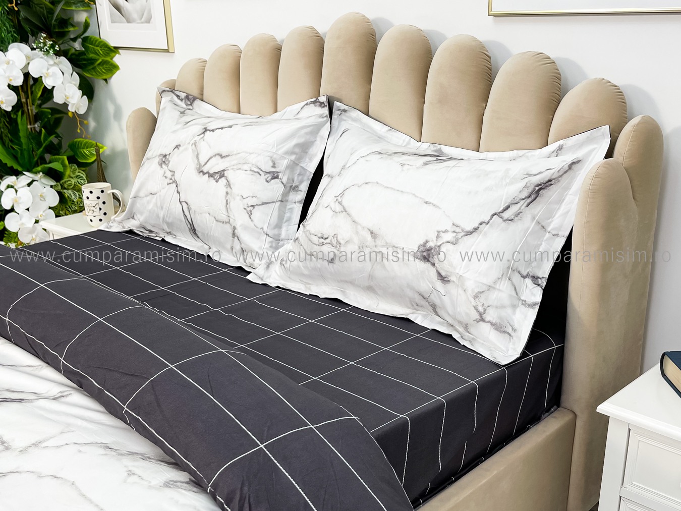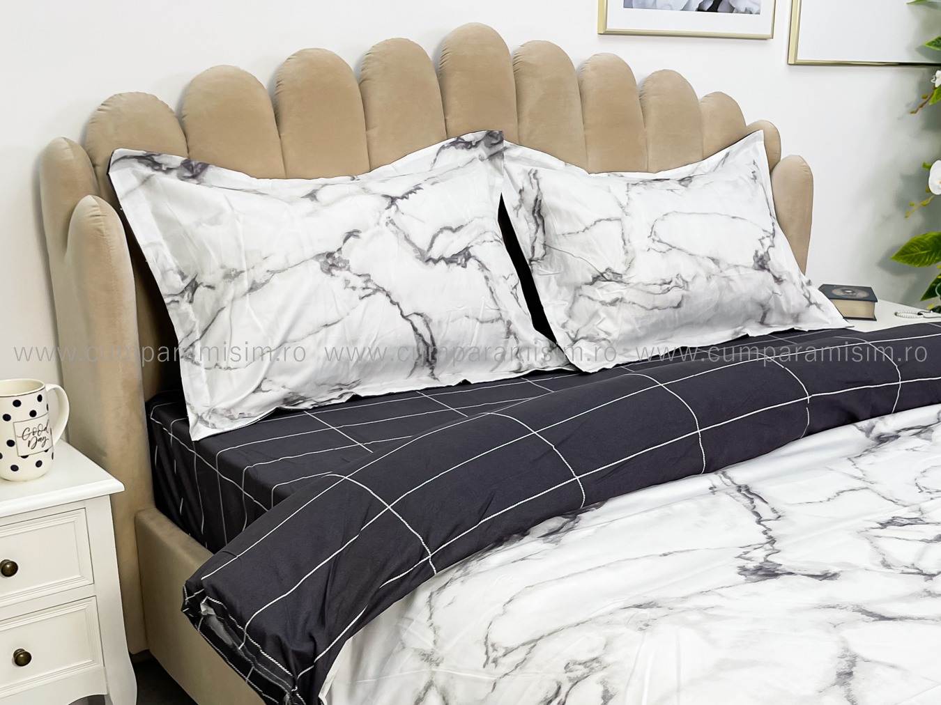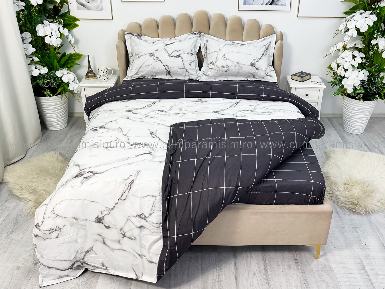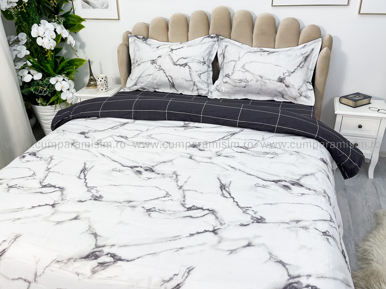 (OFERTA 3 la 199 Lei) Lenjerie pat dublu cu doua feţe, bumbac satinat, 4 piese, Gri, marmura
