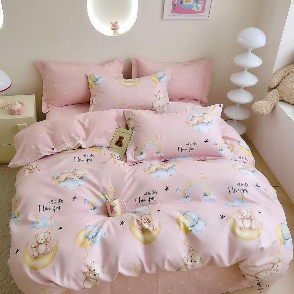 Lenjerie pat dublu, Finet, 6 piese, Roz, ursuleti