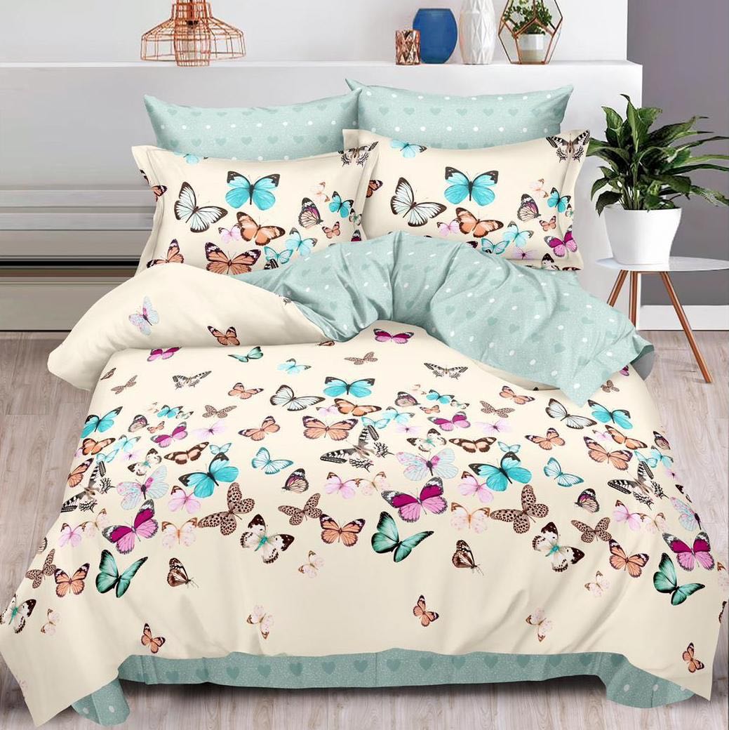 Lenjerie pat dublu, Finet, 6 piese, Bleu, fluturasi