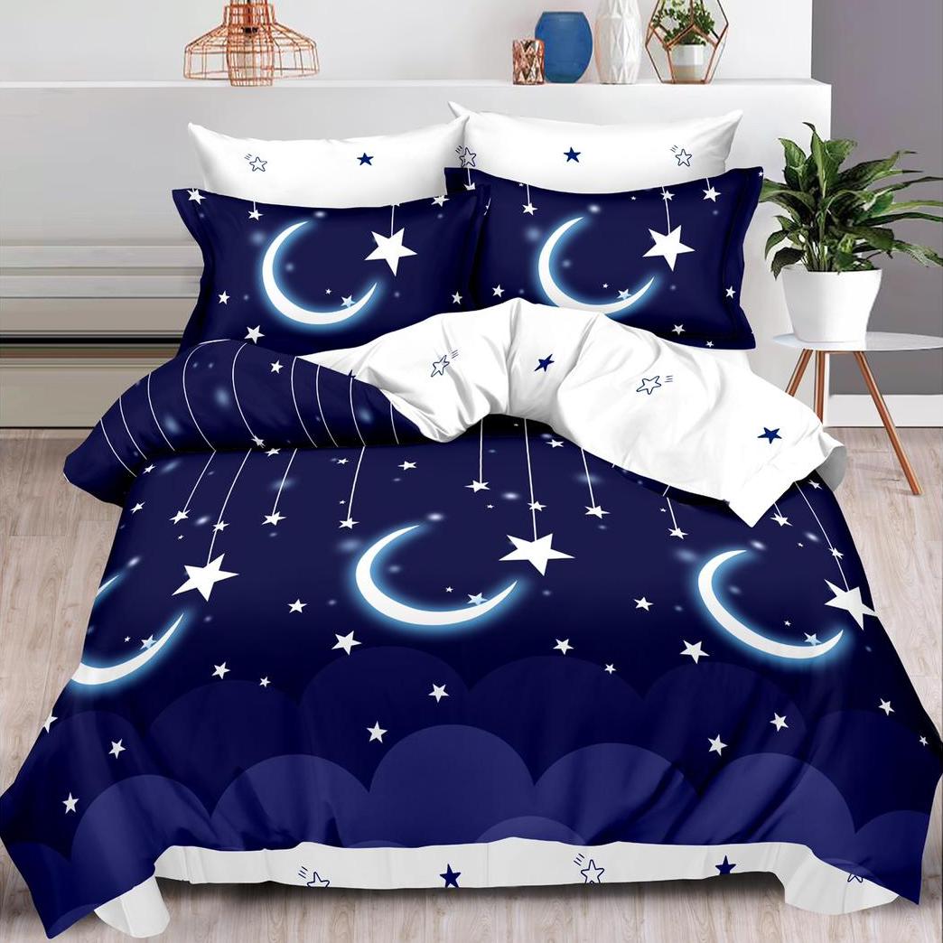 Lenjerie pat dublu, Finet, 6 piese, Bleumarin, stelute
