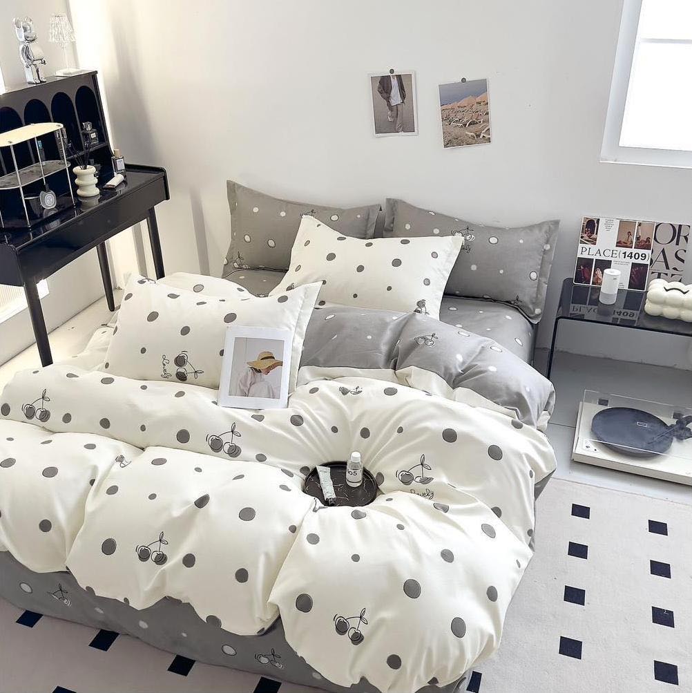 Lenjerie pat dublu, Finet, 6 piese, Crem-Gri, buline