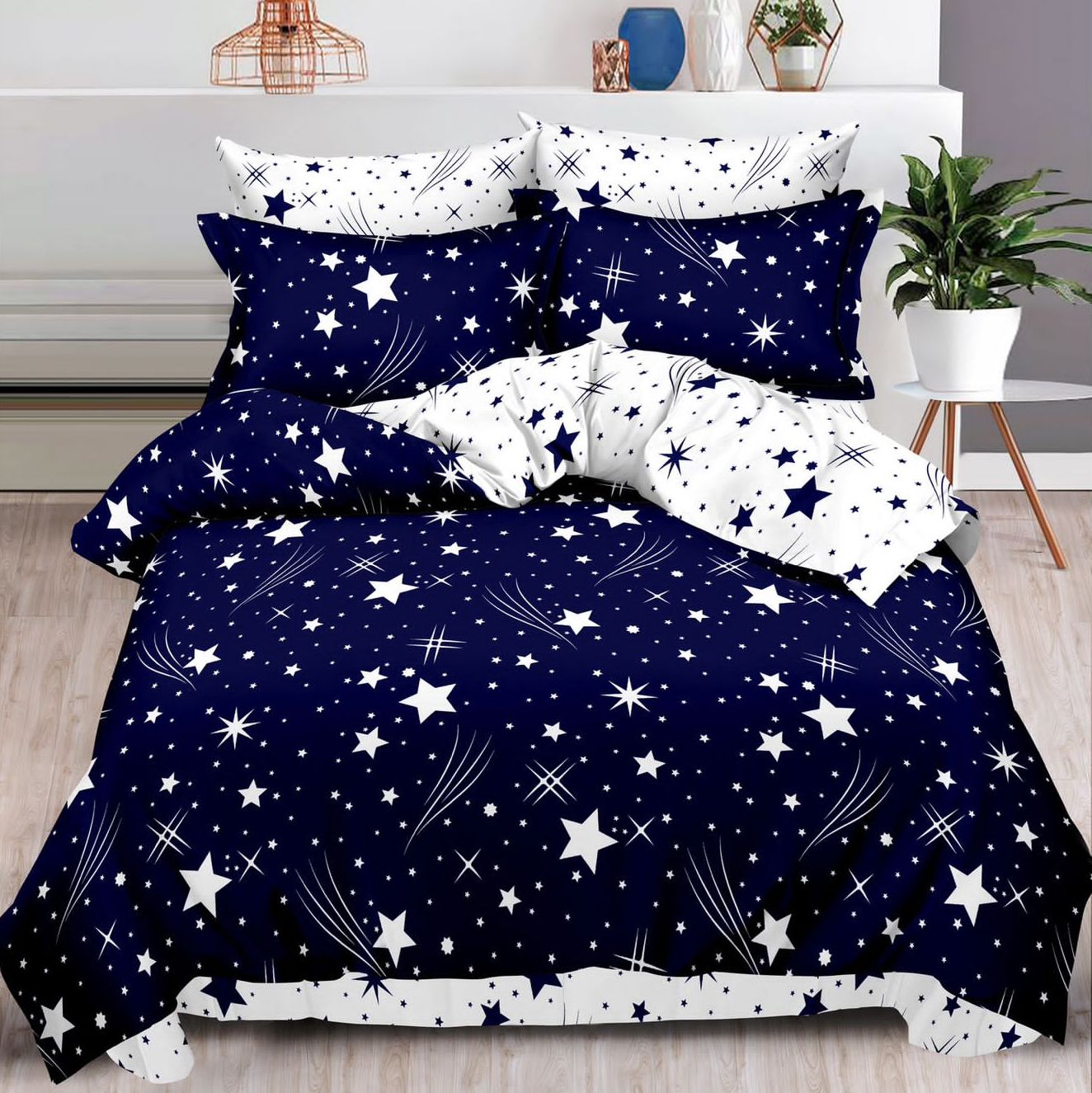Lenjerie pat dublu cu ELASTIC, Finet, 6 piese, Albastru, stelute