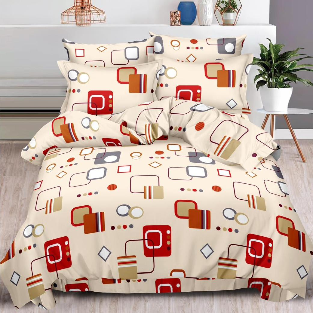 Lenjerie pat dublu cu ELASTIC, Finet, 6 piese, Bej, forme geometrice