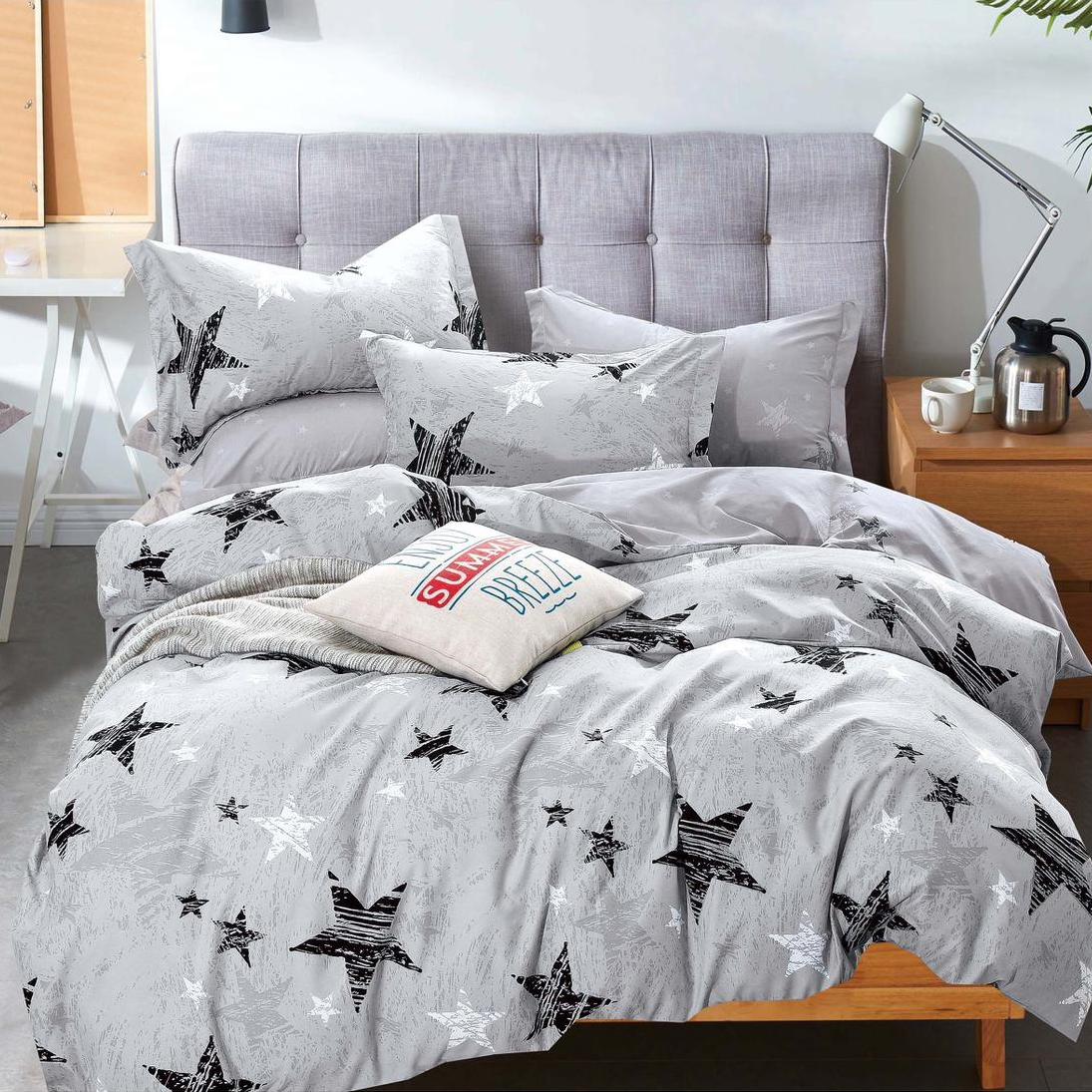 (OFERTA TRIO) Lenjerie pat dublu, FINET, 6 piese, cu ELASTIC, Gri, stelute