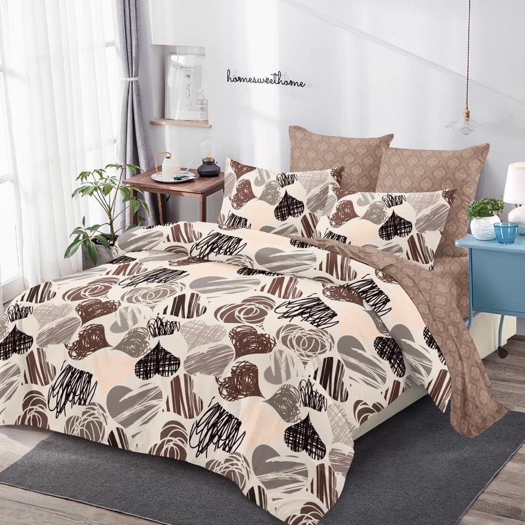 Lenjerie pat dublu cu ELASTIC, Finet, 6 piese, Maro, inimioare