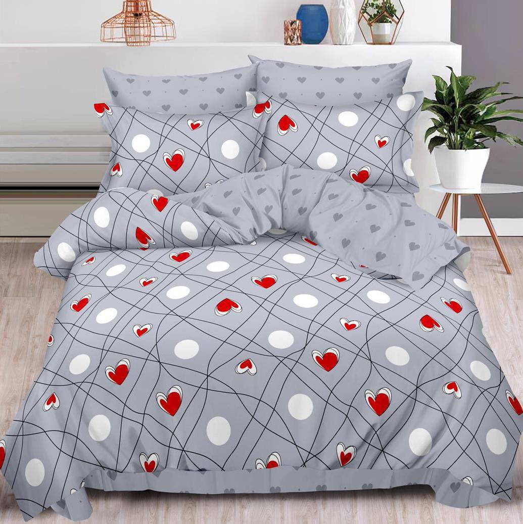 Lenjerie pat dublu, Finet, 6 piese, Gri, inimioare, buline