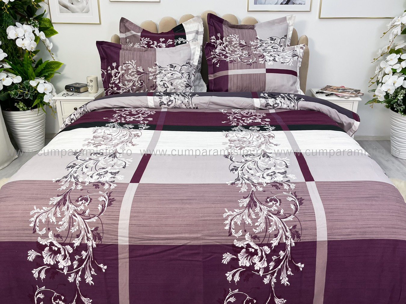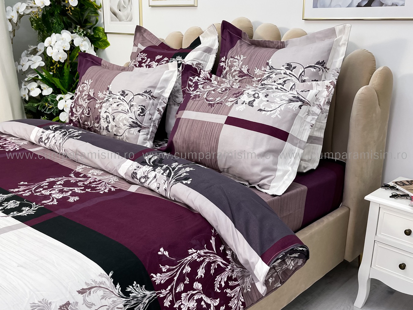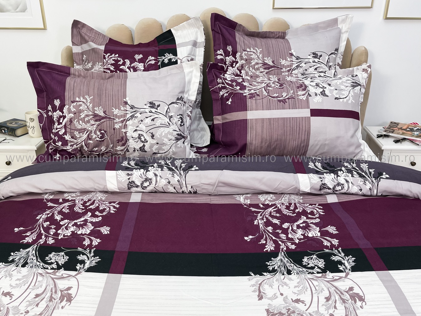 (OFERTA TRIO) Lenjerie pat dublu, FINET, 6 piese, Mov, floral