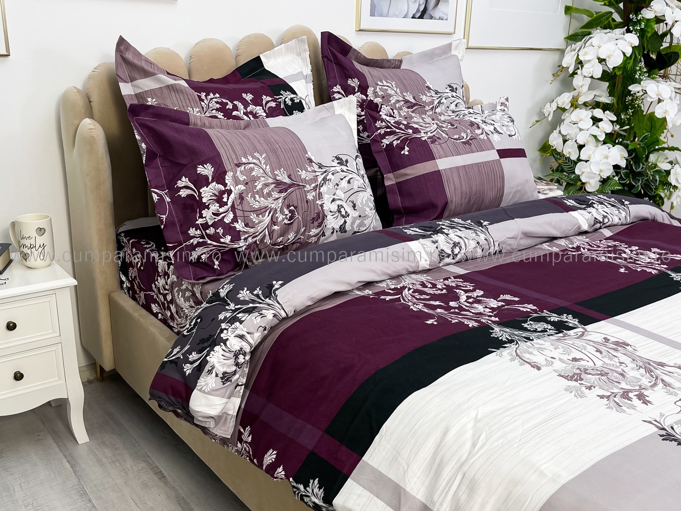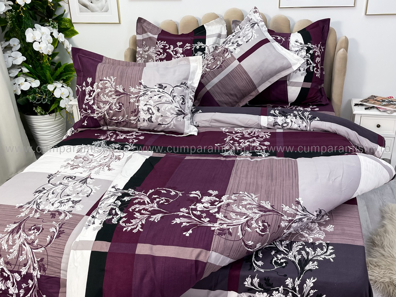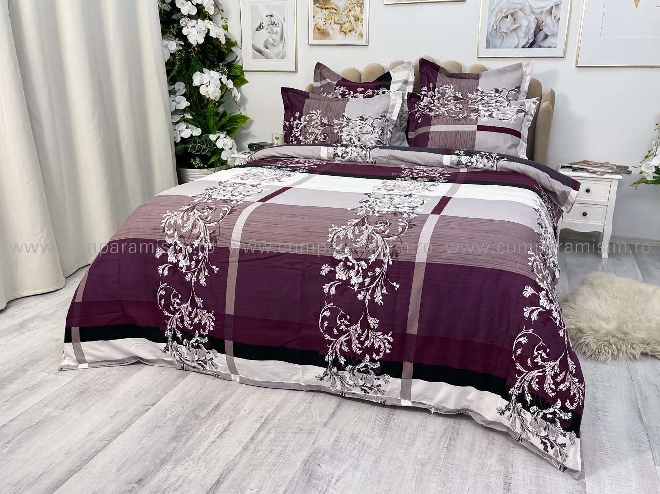 (OFERTA TRIO) Lenjerie pat dublu, FINET, 6 piese, Mov, floral