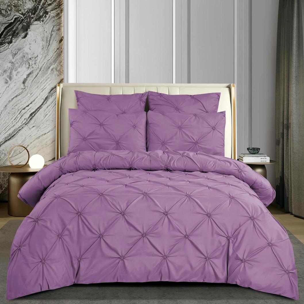(OFERTA TRIO) Lenjerie pat dublu, FINET cu ELASTIC, 6 piese, PLIURI BRODATE, Mov