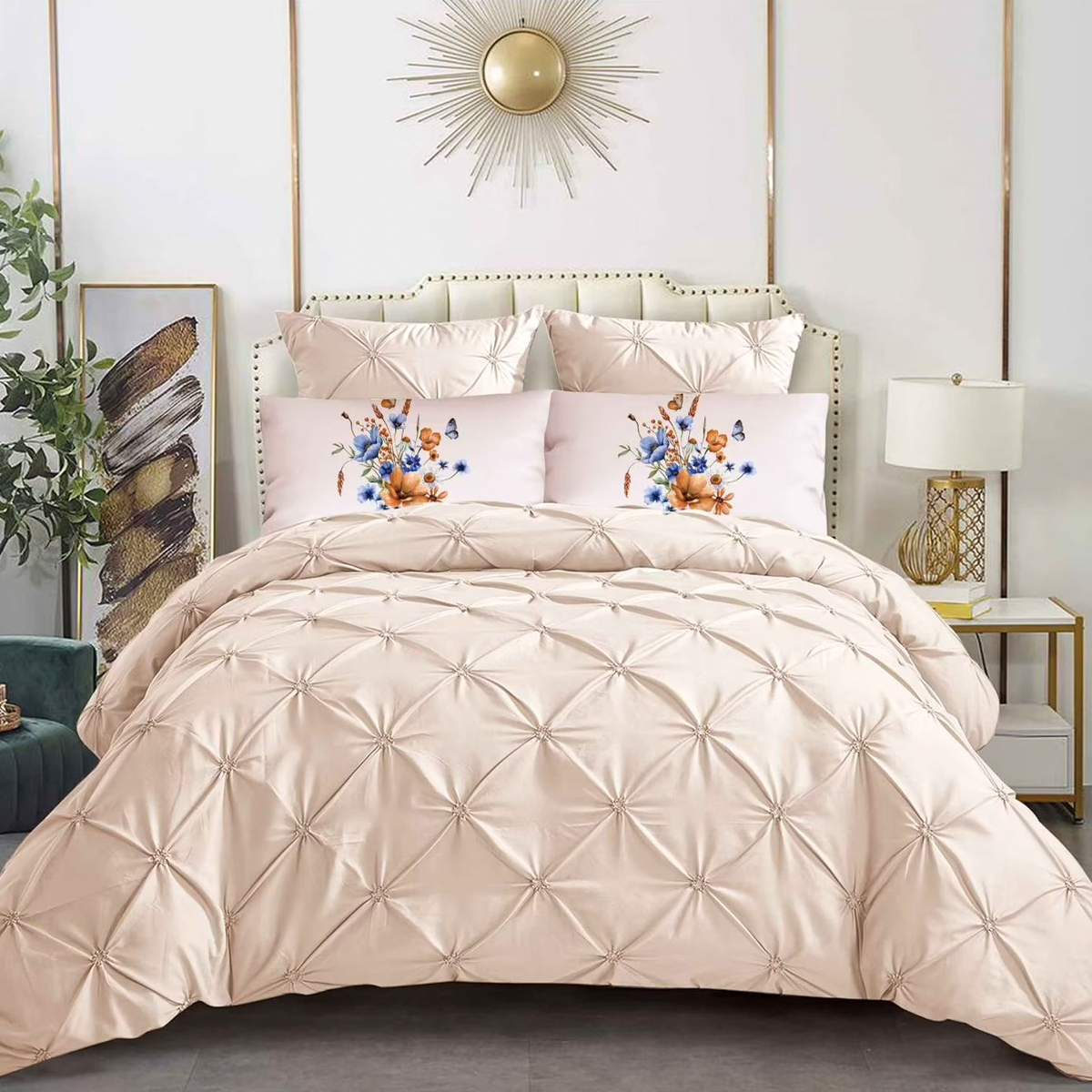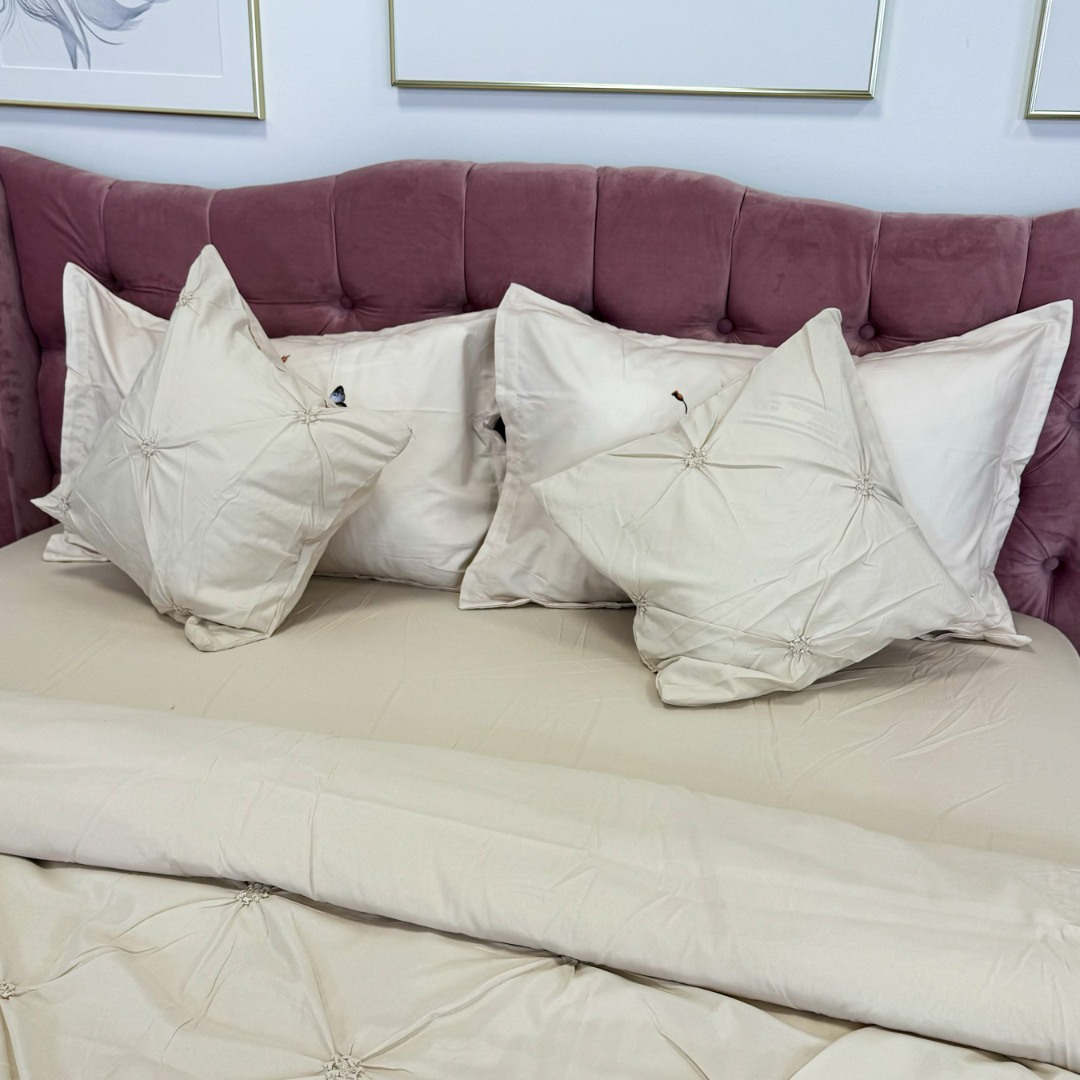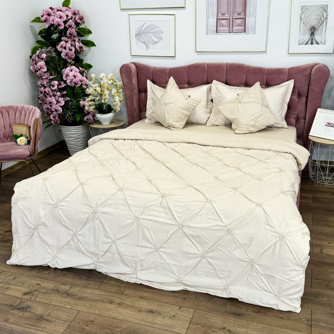 Acest set de lenjerie de pat dublu, Finet Satinat Deluxe cu Pliuri Brodate, identic cu poza, este adevaratul exemplu de eleganta si confort. Fabricat din finet satinat de inalta calitate, acest set de lenjerie de pat ofera o senzatie de matase, garantand un somn linistit si placut. Designul cu pliuri brodate adauga un plus de rafinament, conferind o nota de lux si stil camerei dvs. Fiecare detaliu este atent conceput, astfel incat setul sa fie nu doar frumos, ci si durabil. Acest mater