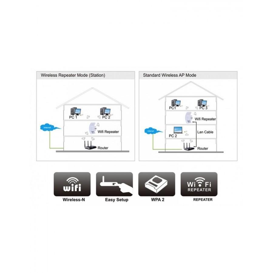 Amplificator WPS Retea Semnal Wireless-N WiFi Repeater Acest amplificator retea semnal Wireless-N WiFi Repeater este folosit pentru a duplica semnalul wireless intr-o arie mare cum ar fi o fabrica, strada sau in casa. Cu un design inovator acest aparat wireless este practic si usor de montat de catre orice persoana. Produsul are doua antene incorporate de 2dBi cu cip si ofera performante senzationale fara fir, rate de transmisie, tehnologia stabilitata evita in mod automat conflictele de canal utilizand functia de selectie canal. Cu ajutorul amplificatorului va puteti conecta la internet in locuri in care normal nu ati avea acces la internet. Caracteristici: 1. Repeaterul WiFi este un dispozitiv de conectare la retea prin cablu / wireless. 2. Software nou, pentru o configurare mult mai usoara. 3. Acces la standardul wireless 802.11n cu viteze de transmisie wireless de pana la 300Mbps. 4. Usor de extins gama de retea Wifi, fara griji cu privire la semnalul slab de Wifi. 5. Functioneaza bine si cu alte produse wireless de protocol 11b / g si 11n. 6. Imbunatateste acoperirea wireless in toate retelele WLAN. 7. Ofera rate de transmisie de pana la 300Mbps. 8. In jos respecta standardul 802.11g (54Mbit / s) si standardul 802.11b (11Mbit / s). 9. Utilizati-l pentru a extinde domeniul retelei Wifi intr-o zona extinsa sau pentru a elimina zonele moarte datorita puterii reduse a semnalului 10. Nu exista cabluri trailing in jurul locului. 11. Reteaua de retele WLAN de 2,4 GHz. 12. Suporta modul de repetare fara fir si modul AP standard. 13. Punct de acces wireless sau extensie de retea pentru a aduce WiFi la domiciliu, la birou sau la birou. 14. Antene integrate. 15. Securitate WLAN maxima cu WPA2, WPA si WEP (128/64). Specificatii produs: Temperatura de operare: 0 ℃ ~ 40 ℃ Temperatura de depozitare: 10 ℃ ~ 70 ℃ Umiditate relativa (operationala): 10% ~ 90%, fara condensare Umiditatea relativa (depozitare): 10% ~ 90%, fara condensare Distanta: in aer liber 300m, in interior 100m (in functie de schimbarile actuale de mediu) Dimensiunea produsului: 90 * 80 * 50 mm Greutate neta: aprox. 125 grame Pachetul include: 1 x amplificator wireless 1 x cablu conexiune