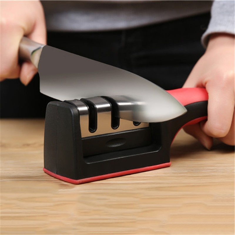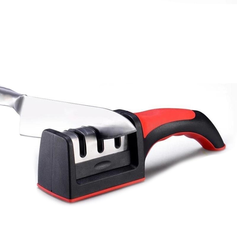Aparatul pentru ascutit cutite potrivit pentru uz casnic sau profesional, special creat pentru a rezista in timp, cu o tija din otel inoxidabil de calitate pentru ascutirea celor mai uzate lame ,a cest dispozitiv restaureaza lame in cateva secunde si rezistent la mii de lovituri , Cu sistemul nostru incredibil, revolutionam arta de ascutire a lamelor ,prima tija de ascutire a diamantului repara si indreapta lamele deteriorate, a doua tija restabileste forma V, iar cea de-a treia polizeaza pentru o lama fina . Cu setul nostru profesionist, va puteti ascuti cutitele ca un bucatar profesionist acasa , fabricat din plastic pentru antialunecare abs solid si ceramica face ca produsul sa fie unul durabil, puternic .Utilizand acest produs cutitele vor arata si vor functiona ca noi. Mai mult, cu sistemul sau de ascutire in trei etape, puteti lustrui lamele la o claritate deosebita, acest produs este conceput de asemenea si pentru confort, acum nu mai trebuie sa va ingrijorati ca puteti strica lamele cutitelor scumpe cu pietre de mana. Suportul din cauciuc antialunecare si designul ergonomic va mentin in siguranta in timpul procesului de ascutire.
