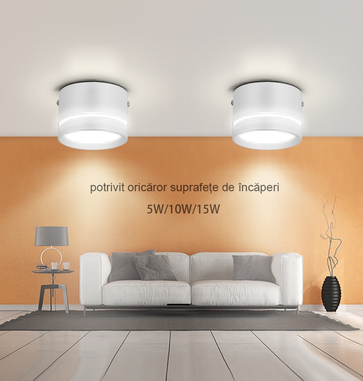 Transformă-ți spațiul cu un iluminat modern și eficient, utilizând acest spot LED de tavan de 5W cu formă cilindrică, ideal pentru a adăuga o notă contemporană oricărui interior. Cu un design minimalist și elegant, acest corp de iluminat este fabricat din aluminiu de înaltă calitate și oferă o temperatură de culoare de 6500K, perfectă pentru iluminatul clar și rece, ideal în spații unde vizibilitatea este esențială. Caracteristici principale: Eficiență energetică : Cu un consum redus de energie de doar 5W, acest spot LED asigură un iluminat eficient și durabil, contribuind la reducerea costurilor de energie electrică. Luminozitate rece și clară : Cu o temperatură de culoare de 6500K, acest spot LED oferă o lumină albă rece, perfectă pentru încăperi unde ai nevoie de o vizibilitate clară și detaliată, cum ar fi bucătării, băi sau spații de lucru. Design modern, cilindric și versatil : Corpul din aluminiu, cu formă cilindrică și finisaj alb mat, adaugă un accent contemporan și rafinat oricărui spațiu. Materialul din aluminiu nu doar că adaugă durabilitate, dar și un aspect premium. Montaj ușor : Proiectat pentru a fi instalat cu ușurință pe tavan, acest spot LED este compatibil cu diverse tipuri de suprafețe. Montajul rapid și simplu face ca acest produs să fie ideal chiar și pentru cei fără experiență în instalarea corpurilor de iluminat. Durabilitate și rezistență : Construcția robustă din aluminiu și standardul IP44 asigură protecție împotriva umidității și a prafului, făcând acest spot LED potrivit pentru utilizare în încăperi cu un grad moderat de umiditate, cum ar fi băile sau bucătăriile. Lumina uniformă și plăcută : Tehnologia LED integrată asigură o distribuție uniformă a luminii, fără efecte de pâlpâire sau umbre nedorite. Acest lucru contribuie la crearea unui mediu bine iluminat și funcțional. Aplicații: Acest spot LED de tavan cu formă cilindrică este alegerea ideală pentru diverse spații interioare. Se poate utiliza în: Living și dormitor : Creează o atmosferă modernă și bine iluminată. Bucătărie și baie : Cu protecția IP44 și lumina rece de 6500K, este perfect pentru spațiile unde este necesară o vizibilitate clară. Holuri și coridoare : Asigură un iluminat clar și bine distribuit, facilitând orientarea în spații tranzitorii. Spații comerciale : Ideal pentru showroom-uri, magazine sau birouri, unde un iluminat de calitate și designul modern sunt esențiale. Acest corp de iluminat din aluminiu, cu formă cilindrică, combină eficiența energetică cu un design modern și o instalare ușoară, fiind alegerea perfectă pentru cei care doresc un iluminat de calitate superioară într-un stil contemporan. Investește într-un produs care îți va transforma spațiul într-un mod eficient și estetic.