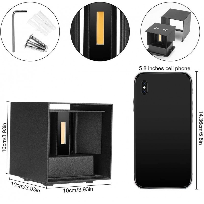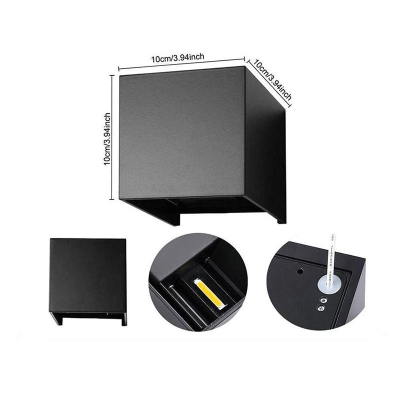 Unghiul de fascicul reglabil Lampa de perete impermeabila reglabila are un unghi reglabil de 0 ° - 100 °, puteti regla unghiul luminilor cu 4 clapete rotative pentru a obtine efectul vizual dorit de iluminare in sus si in jos Versatilitate Aplica de perete Techstar poate fi folosita ca lumina de de perete exterior, interior sau pentru dormitor, terasa, casa, gradina, garaj, hol, coridor, curte, camera de zi, cladire comerciala etc. Facil de instalat Toate accesoriile de montare a lampilor de perete cu leduri sunt ambalate in pachet pentru o instalare rapida si usoara. Se sugereaza un electrician autorizat pentru instalare. Materiale de inalta calitate Aceasta lampa de perete LED din aluminiu impermeabil este fabricata din material de aluminiu mat turnat sub presiune de grosime mata. Cu finisaj anti-rugina, ar putea impotriva soarelui direct continuu, a ploii si este foarte usor de curatat. Rezistent la apa IP65- IP65 nivelul inalt al standardului de rezistenta la apa in iluminatul cu LED-uri. Nu va faceti griji pentru ploaie si ninsoare. 2. Perfect pentru perete interior sau exterior, perete TV, hotel ,balcon, hol, hol, scari de perete. Luminozitate excelenta, temperatura de culoare calda, rece sau naturala (in functie de modelul comandat). Va recomandam cu tarie sa va decorati casa cu lumini de perete cu LED-uri Lampi de exterior cu LEDuri COB ultra-luminoase si lentile din sticla. 4. Este proiectat intr-o forma patrata cu un material din aluminiu mat. designul este simplu si elegant, potrivit pentru toate stiluri de decorare. Specificatii: Putere: 6W Temperatura de culoare: Alb Natural 4000k Tensiune de intrare: 85-265V AC 50/60hz Lumen: 1600lm Dimensiune: 10 X 10 X 10cm/3.94 X 3.94 X 3.94in Tip de instalare: tip montat pe perete Sursa de lumina: 2pc COB LED chip