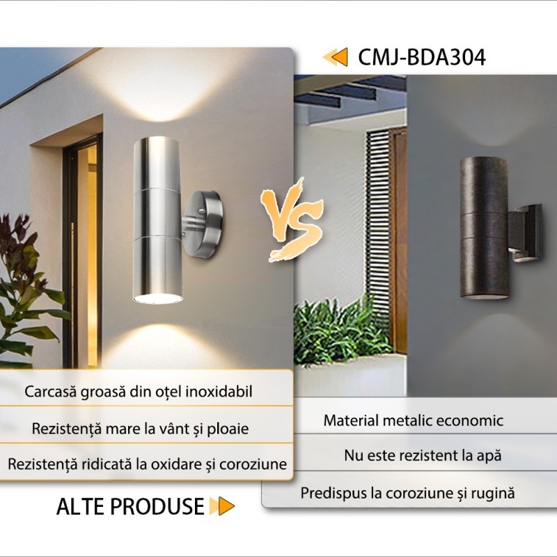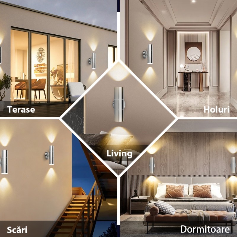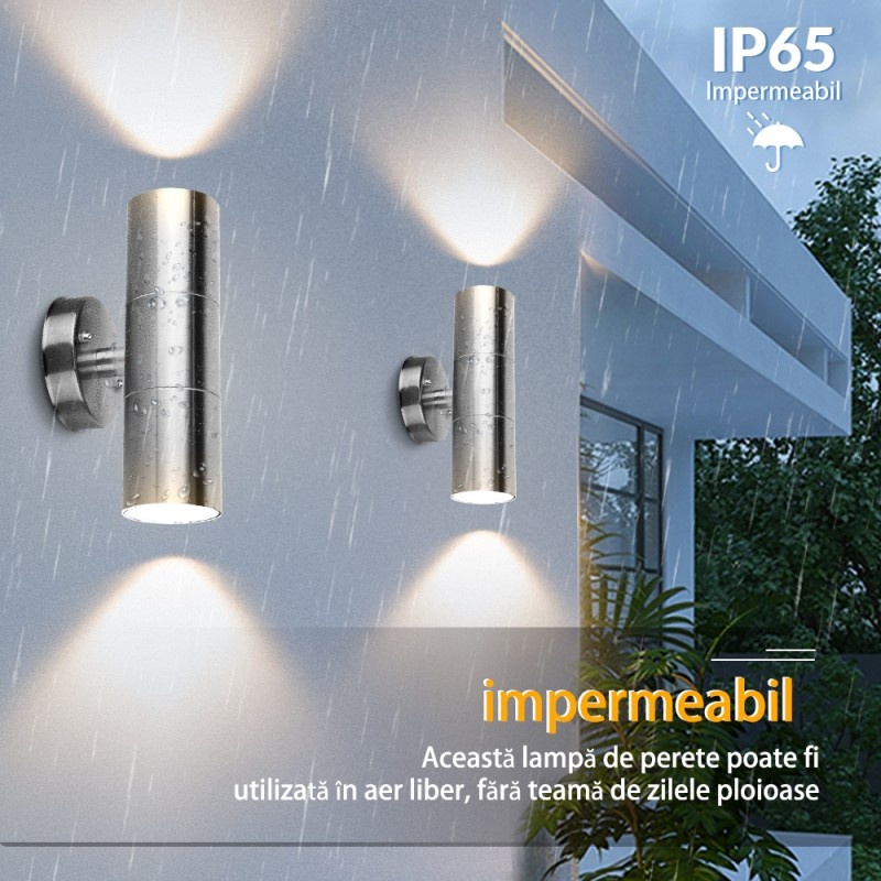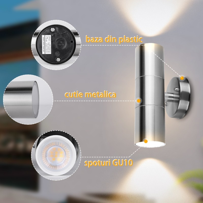 Aplica de perete pentru interior si exterior de la Techstar este o lampă solidă și fiabilă, care emană măiestrie de calitate. Marginile simple și liniile fine ale lămpii solide în formă de cilindru sunt în mod clar înrădăcinate în filozofia contemporana care se află în spatele a tot ceea ce face marca Techstar®. Exteriorul metalic servește ca un contrast minunat cu interiorul alb strălucitor. Acest lucru face ușor să găsiți un loc bun pentru lampă, în special în casele moderne. Lumina superbă care iese din partea superioară și din baza lămpii luminează peretele pe care este montată, luminează împrejurimile într-o lumină clară și uimitoare. Accesoriu ideal pentru casa dumneavoastră. Lumină bidirecțională (în sus / jos) cu unghiul fasciculului de 120 de grade pentru fiecare direcție separat. Fabricat din otel inoxidabil - rezistent la intemperii. Un grad mai mare de protecție IP 65 permite utilizarea în interior și exterior. Specificaţii: Producător: Techstar Material : metal Culoare argintiu Soclu: Modul LED integrat Număr de becuri: 2 Becuri incluse: DA (LED) Culoarea luminii: Alb neutra Temperatură de culoare: 3000 K Puterea de intrare a sursei: 12 W Echivalent cu un bec convențional: 75 W Puterea maximă de intrare a sursei: 12 W Consumul total de energie al corpului de iluminat: 12 W Flux luminos total: 1100 lm Funcție Tehnologie: LED Durata medie de viață a sursei: 50000 h Înălțime: 200 mm Lățime: 60 mm Lungime: 85 mm Greutate: 0,2375 kg Grad de protecție IP: IP65 Tensiune: 220 V Clasa de protecție împotriva șocurilor electrice: 1 Clasă energetică: A