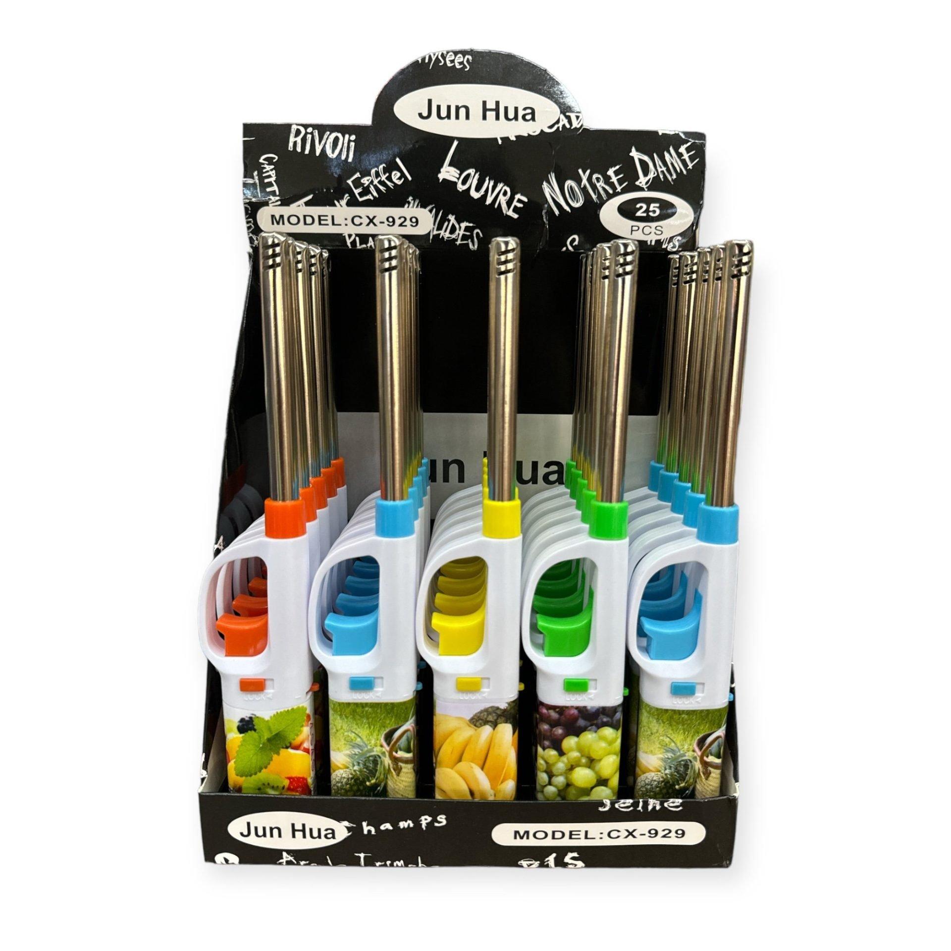 Set 25 bucăți - Aprinzatoare aragaz engros cu gât lung, 22 cm – aprindere sigură pentru aragaz, grătar și lumânări Brichete de înaltă calitate, ideale pentru utilizare casnică sau profesională. Concepute pentru aprinderea sigură și ușoară a focului în grătare, aragaze, sobe sau lumânări, fără risc de accidente datorită mânerului ergonomic și gâtului prelungit. Caracteristici principale: Set: 25 bucăți Model: CX-929 Gât lung pentru o aprindere sigură la distanță Design ergonomic cu buton mare de activare Culori mixte atractive (portocaliu, albastru, galben, verde) Ambalare în stand de prezentare, ideal pentru expunere pe raft Beneficii: Siguranță sporită la aprindere, datorită gâtului metalic prelungit Ușor de utilizat, ideal atât pentru uz casnic, cât și profesional Produs fiabil, perfect pentru comerț en-gros și distribuție Aspect modern și atrăgător pentru vânzare rapidă Recomandări: Perfecte pentru magazine de profil, supermarketuri, benzinării, camping shop-uri sau distribuitori de articole pentru grătar și accesorii casnice.