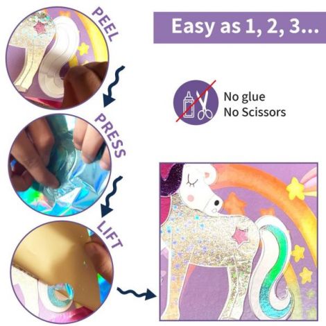 Intra pe taramul magic al unicornilor, dragonilor, printeselor si sirenelor. Creeaza 12 imagini stalucitoare cu folie de transfer.Caracteristici:realizarea imaginilor este la fel de usoara cum ai zice 1,2,3alege o imagine si dezlipeste o sectiune pentru a dezvalui zona lipicioasa. Asaza o folie peste zona respectiva si apasa. Ridica foaia cu folie. Folia stralucitoare se va transfera pe imaginea ta fara a fi nevoie de adeziv.arta cu folie seamana mult cu colorarea unei imagini, dar cu folie in loc de creioane sau markerepe masura ce copiii invata aceasta arta magica isi dezvolta indemanarea, creativitatea si imaginatiaSetul include:50 folii de transfer in culori asortate12 imagini betisor Dimensiune imagine: 12.7 x 17.7 cm Dimensiune ambalaj: 15 x 19 x 3.8 cmVarsta recomandata: 4 ani +Atentie! Contraindicat copiilor mai mici de 3 ani. Jucaria/produsul poate contine piese mici care se pot inghiti sau inhala existand pericolul de sufocare sau nu este potrivita copiilor mai mici de 3 ani. Nu lasati ambalajele jucariilor/produselor la indemana copiilor. Indepartati orice ambalaj al jucariei/produsului inainte de a da jucaria/produsul copilului. Va rugam sa supravegheati copilul in timp ce se joaca/foloseste acest produs. Pastrati instructiunile si etichetele pentru referinte viitoare. Pastrati jucaria/produsul departe de foc, feriti jucaria/produsul de temperaturi ridicate si umiditateContraindicat copiilor mai mici de 3 ani. Jucaria/produsul poate contine piese mici care se pot inghiti sau inhala existand pericolul de sufocare sau nu este potrivita copiilor mai mici de 3 ani. Nu lasati ambalajele jucariilor/produselor la indemana copiilor. Indepartati orice ambalaj al jucariei/produsului inainte de a da jucaria/produsul copilului. Va rugam sa supravegheati copilul in timp ce se joaca/foloseste acest produs. Pastrati instructiunile si etichetele pentru referinte viitoare. Pastrati jucaria/produsul departe de foc; feriti jucaria/produsul de temperaturi ridicate si umiditate.