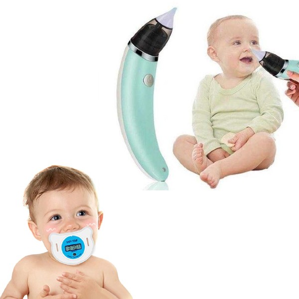 Aspirator nazal electric + Suzeta cu termometru Aspirator nazal pentru copii Cel mai sigur si usor mod de a curata nasurile celor mici! Desfunda cu blandete nasul infundat al copilului dumneavoastra. Usureaza respiratia, imbunatateste starea generala de bine si ajuta la vindecarea racelii copilului. Nivel reglabil al puterii de aspirare si incarcare de la un port USB. Copilul dumneavoastra sufera are din nou nasul infundat si are dificultati de respiratie? Spuneti la revedere metodelor neplacute si iritante pentru a scapa de nasul infundat. Aspiratorul nazal electronic este recomandat de experti si de o multime de parinti multumiti. Potrivit pentru sugari si copii - Cele doua adaptoare din silicon moale pot fi utilizate pentru nou-nascuti si copii cu varsta peste 2 ani. Acestea nu contin substante toxice si, prin urmare, sunt complet sigure de utilizat de catre copii. Dupa utilizare, curatati aspiratorul cu apa calda. Contine 2 tipuri de adaptoare din silicon pentru copii de toate varstele. Este usor de transportat, poate fi utilizat oriunde si oricand. Caracteristici: Material: silicon, ABS Varsta: 0-10 ani Greutate: 0,48 kg Alte caracteristici: 2 adaptoare din silicon Cablu de incarcare USB (adaptorul nu este inclus) Suzeta cu termometru si display masoara temperatura copilului sau bebelusului in 3 minute temperatura este afisata in momentul in care cifrele nu mai palpaie pe display nu polueaza mediul, nu deranjeaza bebelusul deoarece nu are mercur functie beep buton on/off functie de inchidere automata cand nu este utilizat igienic evitati aruncarea sau trantirea termometrului usor de citit masoara temperaturi cuprine in intervalul: 32°C - 42°C/89.6°F - 107.6°F acuratete :±0.1°C/0.2°F functioneaza cu 1 baterie (inclusa)1 xButton Battery (included) dimensiuni: 57*42 mm greutate: 50 grame curatarea suzetei se face cu spirt sau o carpa umeda dotata cu capac de protectie pentru perioada cand nu este utilizata Atentie! Aceste produse nu se pot returna fiind un produs de uz personal. In cazul aparatelor de ingrijire personala si / sau a produselor de igiena personala, din motive de sanatate sau de igiena, acestea nu pot fi returnate dupa desigilare sau folosirea o singura data, Ex: aparate de aerosol, saltele antiescara, electrostimulatoare, pansamente, scutece, etc – conform art 16. lit. e / ordonanta 34/2014.