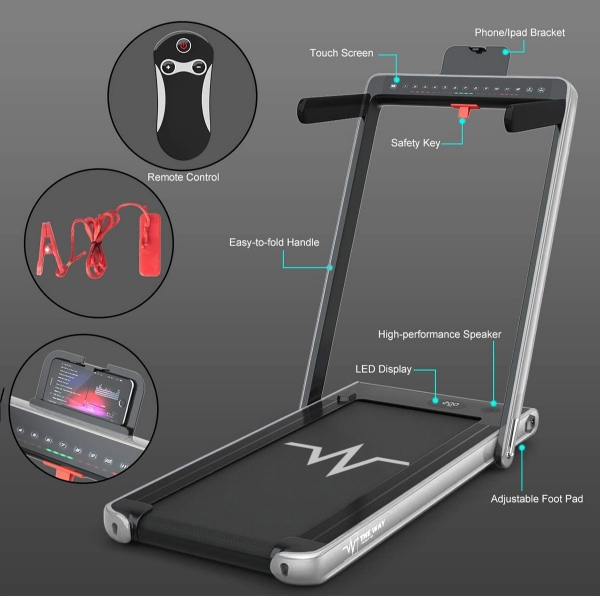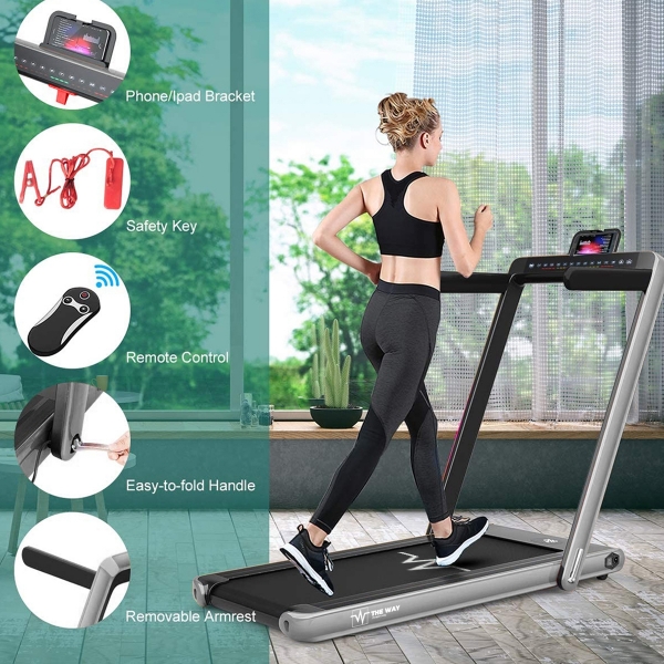 Banda de alergat T4000 plus ideala pentru antrenament acasa. Ocupa foarte putin spatiu, fiind pliabila total, poate fi depozitata sub pat sau canapea. Consola cu sistem dublu de control tactil, la o singura atingere. Exista doua afisaje ale sistemului de control tactil, pe care le poti controla cu mana sau cu telecomanda. Reglabila la 120 grade. Banda de alergat model Dimond cu suprafata de alergare extinsa ce va permite sa beneficiati de un antrenament sigur si confortabil. Suprafata de alergare din cinci straturi de calitate superioara ce va protejeaza genunchii impotriva socurilor. Functioneaza in doua moduri: mers (walking) si alergat (running mode). Caracteristici: Tensiune: 220V Culoare: argintiu Bluetooth Putere motor: 1.75 CP Viteza: 1 - 12 KM/H Afisare consola: Sistem de control cu touch screen cu buton de start/stop, viteza, buton de +/- Display-ul afiseaza informatii precum: timp, viteza, distanta, calorii Zona de alergare: 40*110 cm Greutatea maxima a utilizatorului: 90 kg Greutate: 36 kg, cu tot cu ambalaje 40 kg Dimensiune banda montata: L 133.5 * W 68.5 * H 106.5 cm Dimensiune dupa pliere: L 142.5 * W 68.5 * H 11.2 cm Pentru functionarea benzii in conditii optime, se recomanda utilizarea benzii max 1 ora/zi Producator: TheWay Fitness Intretinere: necesita lubrifiere in functie de frecventa utilizarii - utilizare 1 ora / saptamana - lubrifiere o data la 6 luni - utilizare 3 ore / saptamana - lubrifiere o data la 3 luni - utilizare 4-6 ore / saptamana - lubrifiere o data la 2 luni - utilizare mai mult de 6 ore/ saptamana - lubrifiere in fiecare luna Consultati manualul de utilizare si intretinere livrat odata cu banda de alergare.