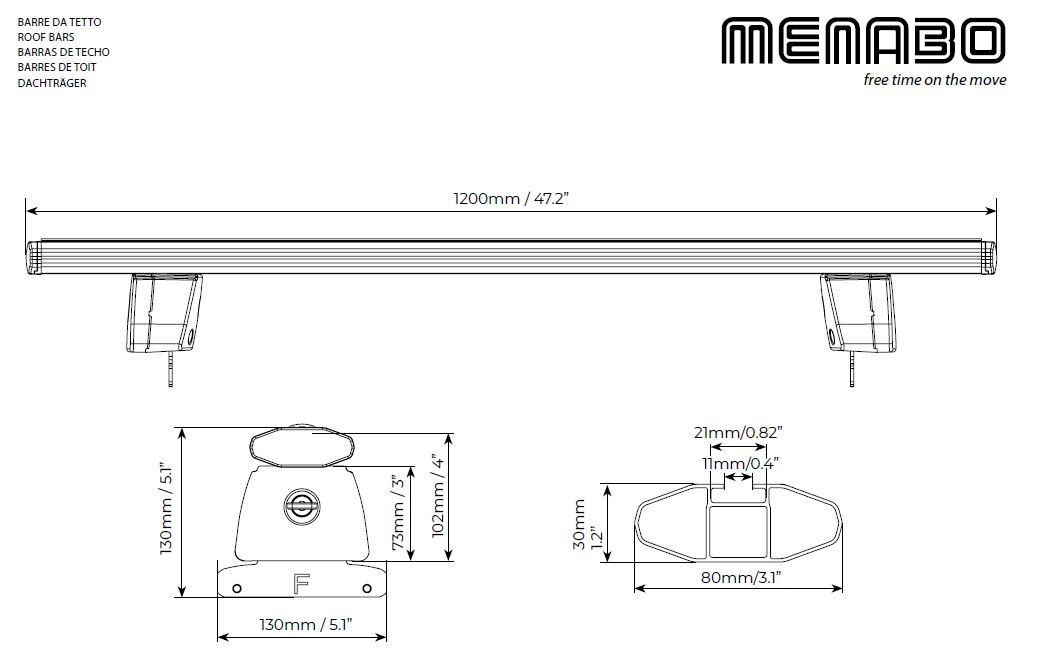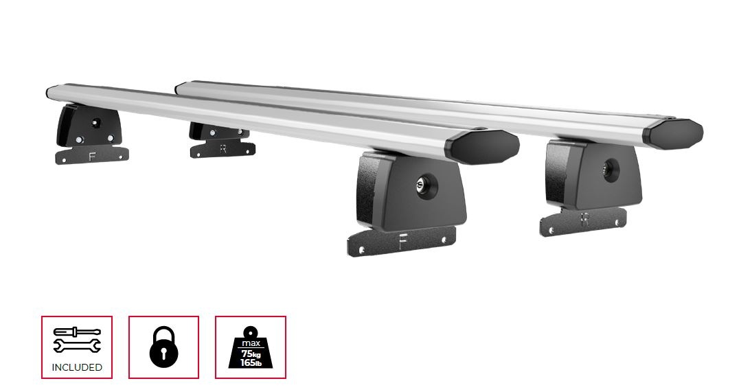Bare transversale aluminiu Menabo dedicate Jeep Compass (MP/552), model 2016+ Setul de bare transversale cuprinde toate elementele necesare pentru montarea pe sistemul de fixare in punct fix de pe plafonul autoturismului. Cu o lungime de 120 cm si capacitate de 75 kg, barele se potrivesc pentru toate tipurile de portbagaje (cutii portbagaj, suport bicicleta, suport schi, portbagaj caiac/canoe, etc.). Barele transversale sunt prevazute cu canal standard profil T de 20mm pentru montarea diferitelor accesorii, oferindu-va astfel o gama larga de posibilitati pentru transportul bagajelor. Barele transversale beneficiaza de un sistem de prindere fix si sigur ce previne miscarea sau jocul acestora si implicit al bagajelor in trafic. Sistemul este dotat cu sistem antifurt. Montarea acestora se realizeaza rapid, folosind doar o cheie imbus. Barele au sectiune ovala ce confera un profilul aerodinamic barelor transversale ce ajuta la minimalizarea zgomotului si reducerea rezistentei aerodinamice. Sistemul de bare contine: - 2 x Bare transversale din aluminiu - 4 x Sisteme de prindere dedicate - 1 x Cheie imbus (nu este necesara o alta unealta) Specificatii tehnice bare Jeep Compass (MP/552), model 2016+: - Lungime bara 120 mm - Inaltime bara 30 mm - Latime bara 80 mm - Greutate 4kg - Material aluminiu - Canal pe toata lungimea barii de 20mm - Sistem antifurt: Da - Capacitate maxima 75 kg - Testate TUV - Aprobate ISO/PAS 11154:2006 clauses 5.2.4, 5.3.5 - Aprobate DIN75302