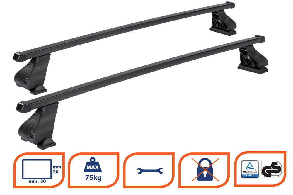 Bare transversale K39 - K1 pentru Volkswagen T5 Transporter, model 2009-2015 Cauti o solutie excelenta de transport la un raport calitate-pret excelent? Descopera barele transversale K39 pentru masina ta. Barele acestea sunt fabricate din otel dur si ofera siguranta oricarui transport. Pe barele transversale K39 poti monta accesorii auto precum suporti de bicicleta, cutii portbagaj sau suporti schi, dar doar cu sistem clasic U de minim 30 mm. Sistemul de bare transversale K39 K1 este compatibil cu autovehicule care nu sunt dotate cu bare longitudinale din fabrica. Astfel, prinderea barelor K1 pe masina se face direct pe caroserie cu sistem de prindere dedicat pentru autoturismul tau. Barele K39 sunt compatibile cu majoritatea accesoriilor auto existente pe piata. Barele de otel sunt invelite intr-un strat protector din plastic si toate piesele metalice au un strat de vopsea cauciucata; toate acestea oferta o protectie sporita impotriva coroziunii. Componenta sistemului de bare portbagaj 4 x Sisteme prindere pentru Volkswagen T5 Transporter model 2009-2015 4 x Picioare pentru barele transversale 2 x Bare transversale din otel negre 1 x Cheie imbus (nu este necesara o alta unealta) Specificatii tehnice: - Lungime bara: 1500 mm - Inaltime bara: 20 mm - Latime bara: 30 mm - Material: otel - Culoare: Negru - Canal pe partea superioara a barii: Nu - Sistem antifurt: Nu - Capacitate maxima de incarcare: 75 kg - Aprobate TUV & ISO Video prezentare generala K39 Filmuletele si pozele sunt cu titlu de prezentare. Pentru in montaj corect si rapid, folositi manualul de instructiuni inclus in pachet. Greutatea maxima de incarcare poate sa fie diferita in functie de marca si modelul masinii. Consultati caracteristicile tehnice date de producatorul autoturismului.