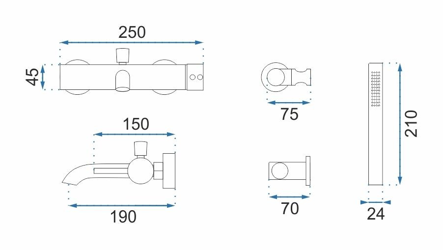 Baterie de cada Lungo funcțională și modernă. Este un produs care iti va umple perfect spatiul de baie pastrand in acelasi timp aspectul si estetica impecabila a interiorului. Bateria este potrivită pentru montare pe perete. Este realizata din alamă acoperită cu un strat triplu de acoperire. Datorită unei faze speciale de producție, este durabil și ușor de curățat.