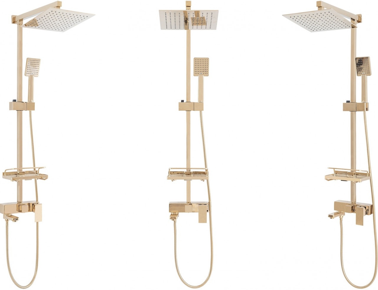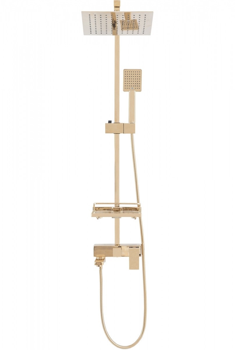 Bateria Jack este ideală pentru o amenajare moderna si eleganta. Bateria este elegantă și atrăgătoare, conferind băii un aspect modern. Designul unic si modern a materialelor folosite garanteaza durabilitatea si fiabilitatea pentru mult timp. Dimensiuni Înălțime: 102 cm Diametrul dușului de ploaie: 25 cm Lungimea furtunului: 150 cm Detalii tehnice Tip baterie: Baterie de dus Material: Alamă Culoare: Gold