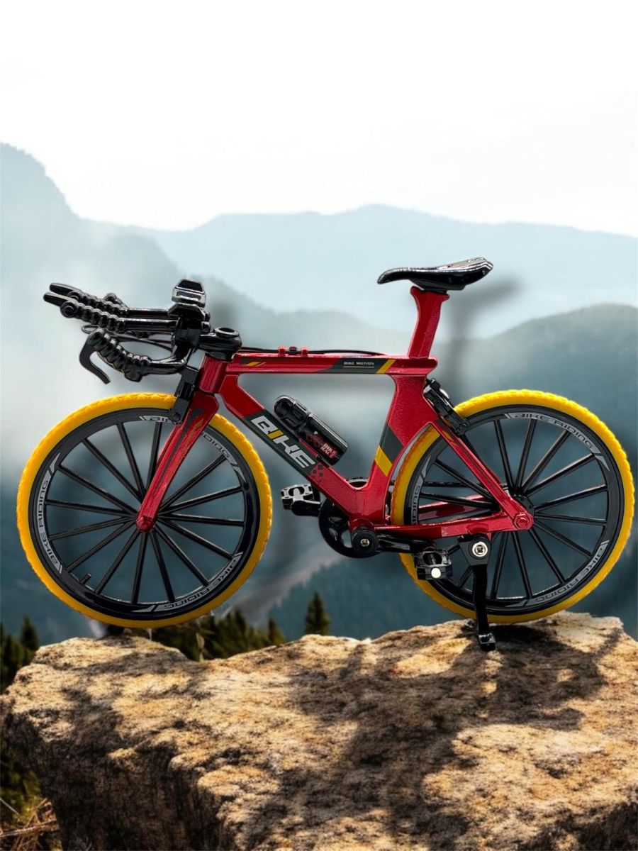 Aceasta bicicleta cursiera miniaturala este realizata din metal rezistent, cu detalii realiste care ii vor incanta pe copii si pasionati de colectii: Roti mobile ,€“ se invart pentru o experienta realista de joc Ghidon functional ,€“ poate fi miscat stanga/dreapta Lant si pedale mobile ,€“ imita perfect o bicicleta reala Design cursiera clasica ,€“ potrivita pentru joaca si decor Beneficii: Stimuleaza imaginatia si joaca de rol, atat individuala cat si in grup Ofera combinatia ideala intre distractie si invatare Rezistenta la utilizare frecventa, cu aspect atractiv si vesel Perfecta pentru cadouri de zi de nastere, sarbatori sau colectii Poate fi folosita si ca decor pentru camera datorita designului detaliat Dimensiuni: aproximativ 20 cmO alegere ideala pentru copii pasionati de biciclete, dar si pentru colectionari sau pentru a adauga un element unic de decor.