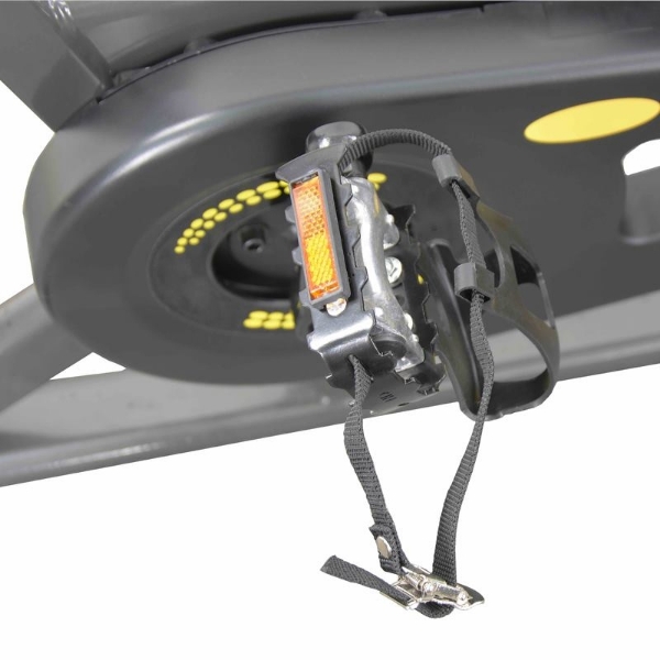 Bicicleta spinning de interior pentru antrenament acasa. Aceasta bicicleta este prevazuta cu un calculator multifunctional pe care puteti urmari functii precum: timpul, distanta, caloriile si viteza. In plus, senzorii de puls de pe manere va ajuta sa va monitorizati atent pulsul in timpul antrenamentului. Scaunul ergonomic si captusit, cu reglare pe verticala in 10 pozitii dar si reglare pe orizontala, ofera confort sporit. Volanta bicicletei este de 13 kg potrivita atat incepatorilor cat si avansatilor in cycling. Este dotata cu rotita de reglare a rezistentei. Ghidonul bicicletei este reglabil pe 6 pozitii de inaltime. Cadrul este construit din otel durabil vopsit in negru si galben. Pentru manevrarea cat mai usoara a bicicletei, stabilizatorul frontal este dotat cu roti de transport. Datorita caracteristicilor excelente si a designului modern, bicicleta spinning este un echipament fitness ideal pentru acasa.Caracteristici bicicleta Spinning: Volanta 13 kg Transmisie pe curea Scaun in forma ergonomica si captuseala moale Pedale antiderapante cu bretele pentru picior Roti pentru transport si protectii antiderapante Constructie rezistenta si stabila - cadru din otel Scaun reglabil pe verticala si orizontala Ghidon reglabil Suport multifunctional cu bidon pentru apa Senzor puls pe manere si suport pentru coate Monitor performant LCD ce afisează: viteza, timp, distanta, calorii, puls Dimensiuni aparat: 105x48x100 cm Greutate aparat: 27.5 kg Greutatea maxima a utilizatorului: 100 kg Recomandata pentru utilizare acasa Culoare : Negru/galben Producator: OnWay Fitness