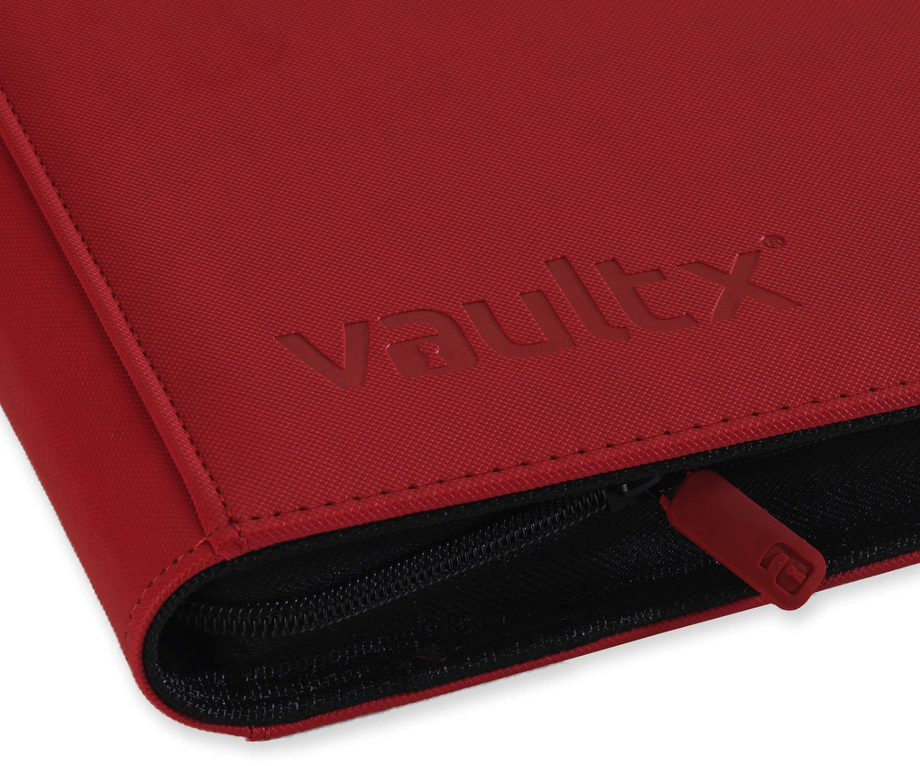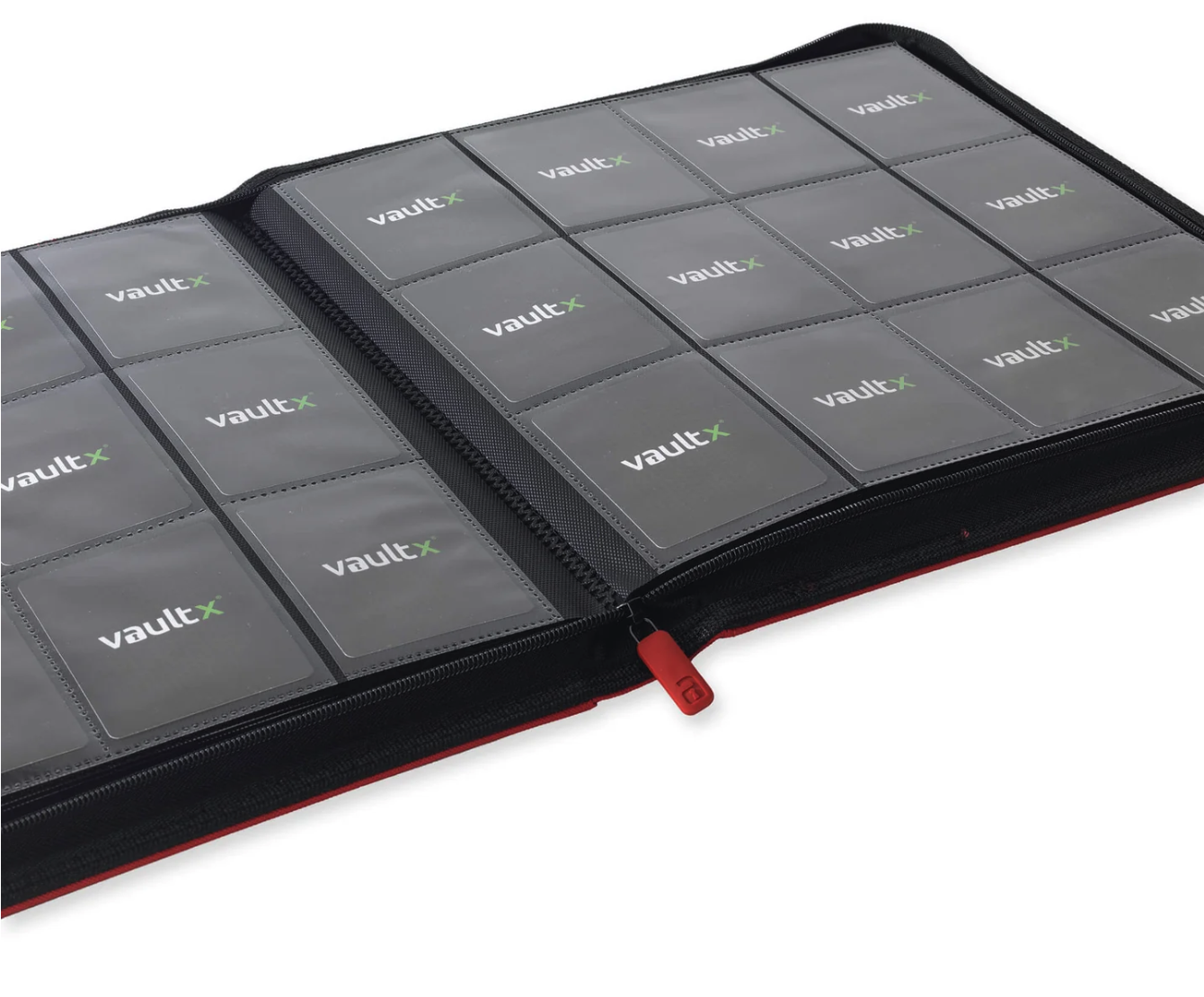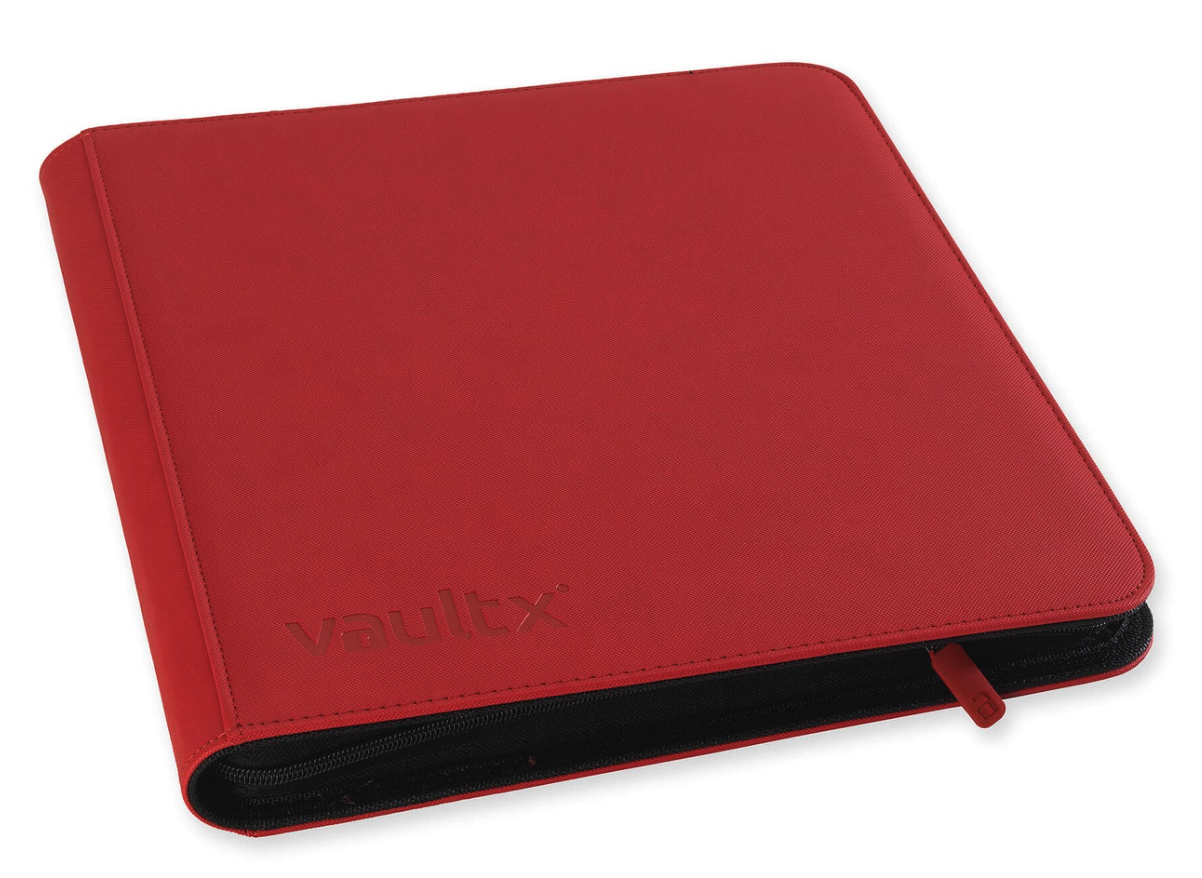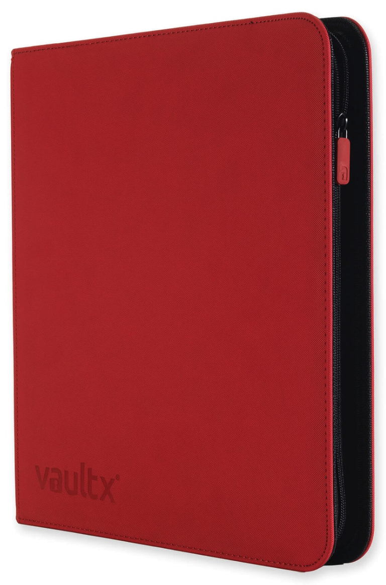 Binder TCG - 12-Pocket Exo-Tec - Vault X (Red)12 pocket per page premium quality zip-up trading card binder. With padded, extra rigid front and rear covers made from non-slip, water resistant Exo-Tec® material. 20 pages holding 480 cards. Made from archival-safe, acid-free non-PVC material. 12 Month Warranty from date of purchase.20 Archival safe 12-pocket pages68mm x 97mm internal pocket sizeFits standard size gaming cardsPremium quality padded coversWater-resistant Exo-Tec® materialHeavy-duty security zipperSecure side-loading pocketsAcid-free / no PVC