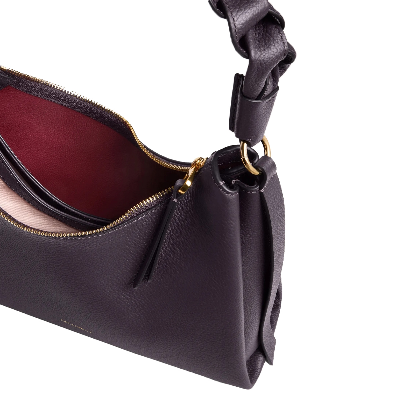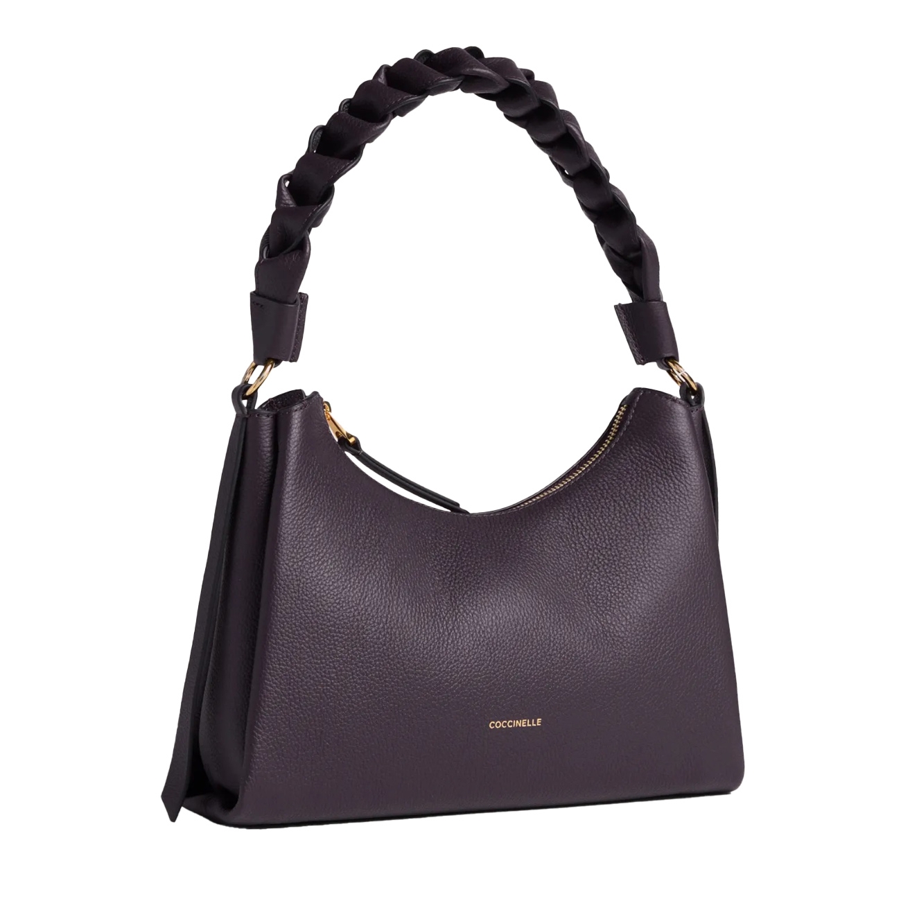 Geantă Boheme din piele dublă, moale și plăcută la atingere, cu un design ce îmbină eleganța feminină și rafinamentul contemporan. Mânerul împletit adaugă un detaliu distinctiv, iar forma spațioasă și funcțională o face ideală pentru femeia activă. Modelul este realizat din piele finisată pe ambele fețe, cu textură suplă și rezistență ridicată, perfectă pentru utilizarea zilnică. Se poartă pe umăr, are închidere cu fermoar și trei compartimente interioare. Detaliile aurii și logo-ul embosat completează aspectul elegant și modern. O geantă elegantă și versatilă, ideală pentru sezonul FW2025.
