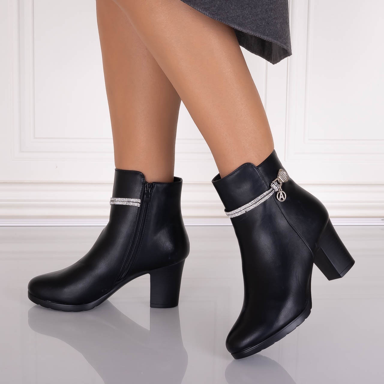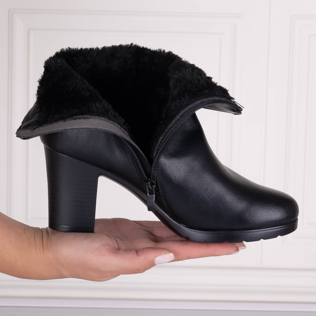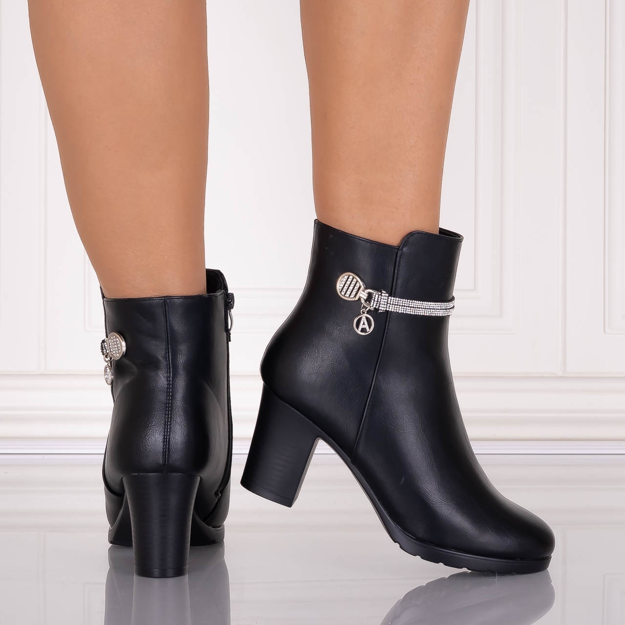Botine Dama Imblanite Negre din Piele Ecologica Serela