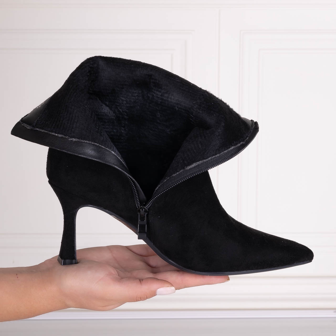 Botine dama Negre din Piele Ecologica Intoarsa Oranda