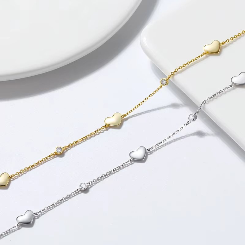 inchidere clasica; greutate: 3.13 g; grosim lant: 0.1 cm; dimensiune inima: 0.9 x 0.6 cm; material piatra: zirconiu; lungime bratara reglabila: 22 + 5 cm; finisaje premium, de lux. Ingrijirea bijuteriilor : Dupa purtare va recomandam sa pastrati bijuteriile in ambalajul original sau intr-un saculet dintr-un material moale, pentru a evita zgarieturile. Pentru a le reda stralucirea este necesar sa le stergeti cu o carpa moale sau cu solutii speciale pentru curatarea argintului. Inainte de culcare, baie sau activitati similare in care bijuteriile ar intra in contact cu apa, produse cosmetice, detergenti, corozive sau chimice, scoateti bijuteriile deoarece aceste produse pot decolora sau modifica stralucirea. Evitati loviturile bruste deoarece ar putea cauza zgarieturi, ciobiri si alte daune si nu lipiti cristalele dezlipite cu adezivi tip super glue, picatura sau orice alt tip.