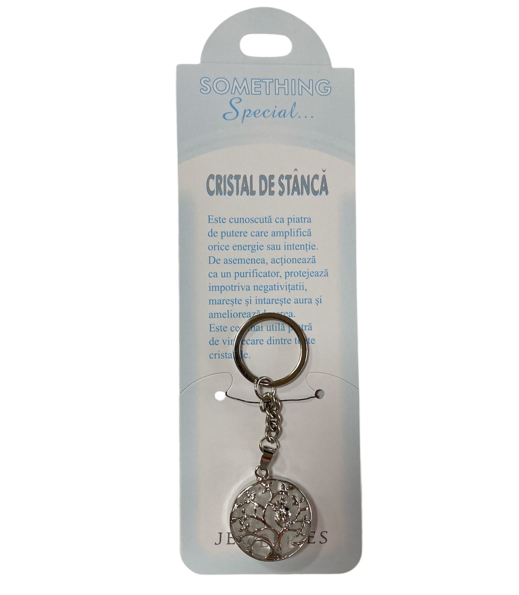 Breloc pom cu bufnita din piatra semipretioasa CRISTAL DE STANCA pe carton, diametru: 2.5 cm