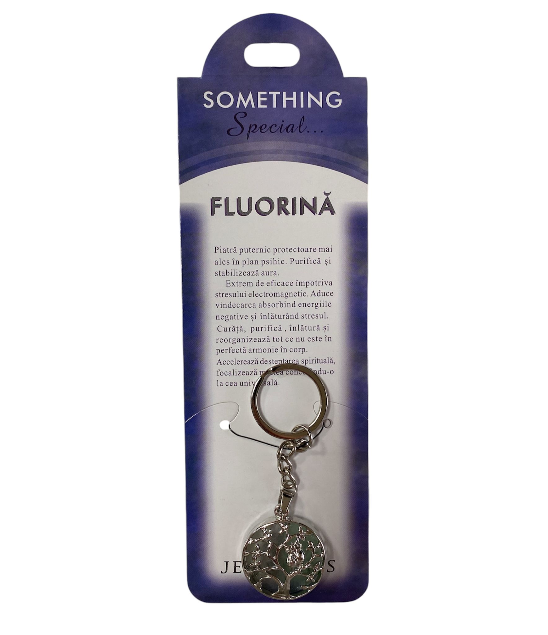 Breloc pom cu bufnita din piatra semipretioasa FLUORINA pe carton, diametru: 2.5 cm