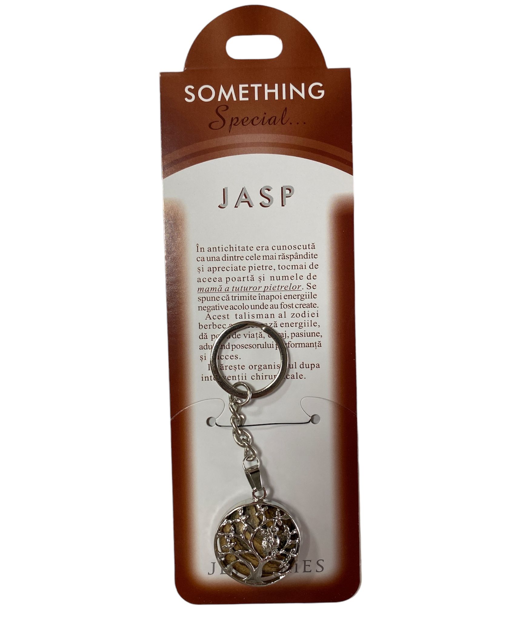 Breloc pom cu bufnita din piatra semipretioasa JASP pe carton, diametru: 2.5 cm