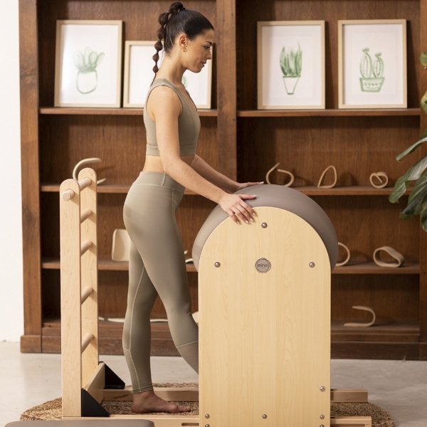 Butoi cu scară din lemn. Acoperit cu piele sintetică antiderapantă și rezistentă. Include platforme pentru picioare. Butoi cu scară de înaltă calitate pentru practica Pilates. Include platforme suplimentare căptușite (mese pentru susținerea picioarelor) care permit efectuarea unei game mai largi de exerciții și posibilitatea de a lucra la înălțimi diferite. Caracteristici: • Bare din lemn. • Butoi acoperit cu piele sintetică nouă, special dezvoltată pentru produsele noastre Pilates. Sistem antiderapant, foarte rezistent. Se conformează reglementărilor de mediu. • Umplutură de densitate înaltă Eva, foarte confortabilă. • Dimensiuni totale: 95 cm x 120 cm.Butoi 55 cm x 88 cm. Dispozitivele noastre sunt disponibile în mod fix în culorile negru și gri. Pentru a le achiziționa în alte culori: fildeș, albastru, verde sau roșu, este necesar să ne contactați deoarece sunt realizate la comandă.