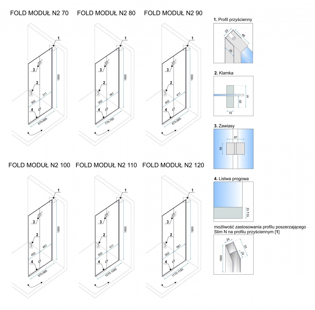 Modulul cabinei Fold N2 este o ușă pliabilă din sticlă finisată cu elemente elegante cromate. Acest model este soluția perfectă pentru spațiile de baie mici și neremarcabile. Fiecare dintre aripi poate fi pliată pe perete, atât în interior, cât și în exterior. Oferă posibilități nelimitate în utilizarea practică a băii. Sticlă din modulul Fold nu este doar sigură, ci și practică, datorită stratului Easy Clean. Datorită acestei tehnologii moderne, nu se depune calcar pe sticlă, iar curățarea nu necesită utilizarea agenților puternici. Notă: Modulul nu funcționează ca ușă independentă.