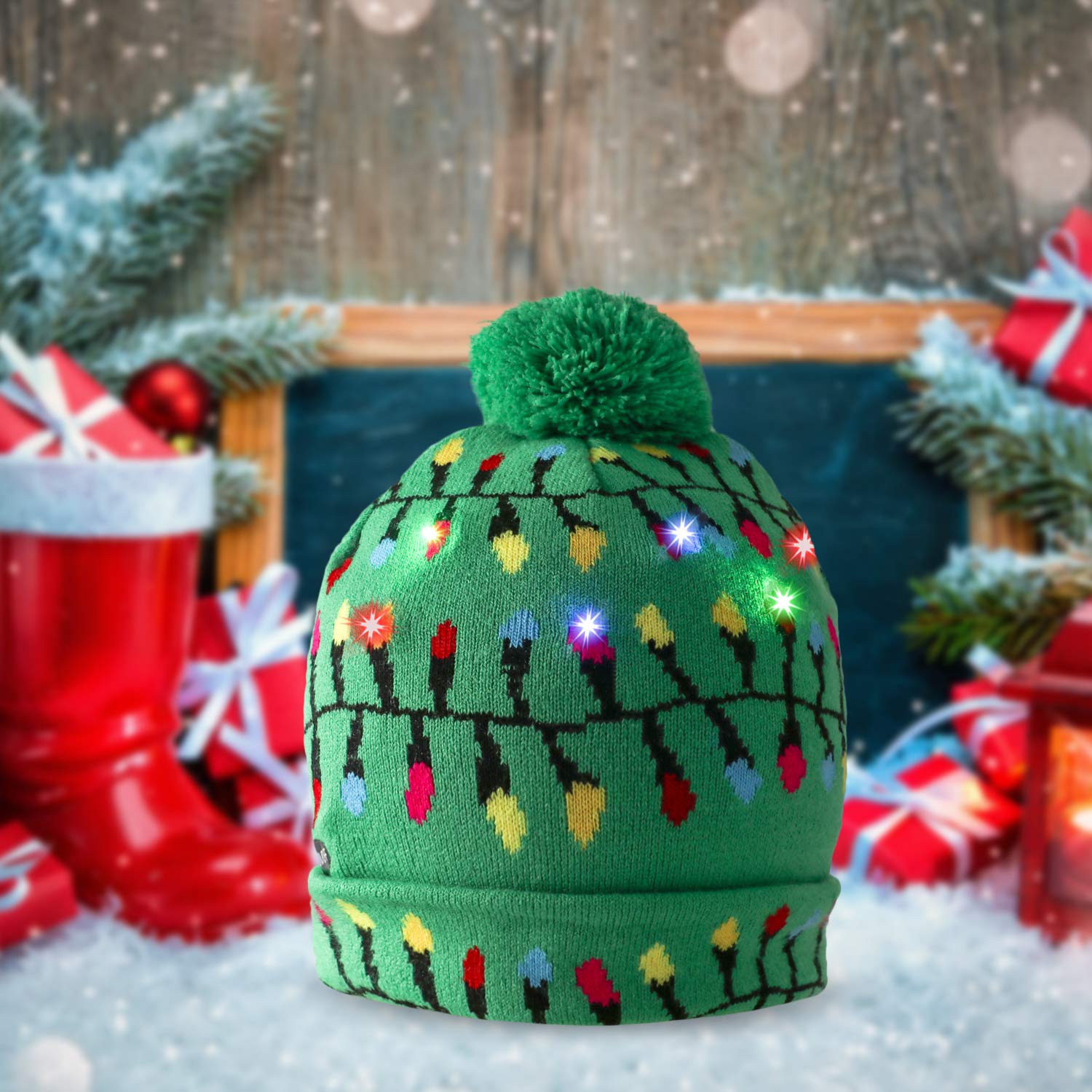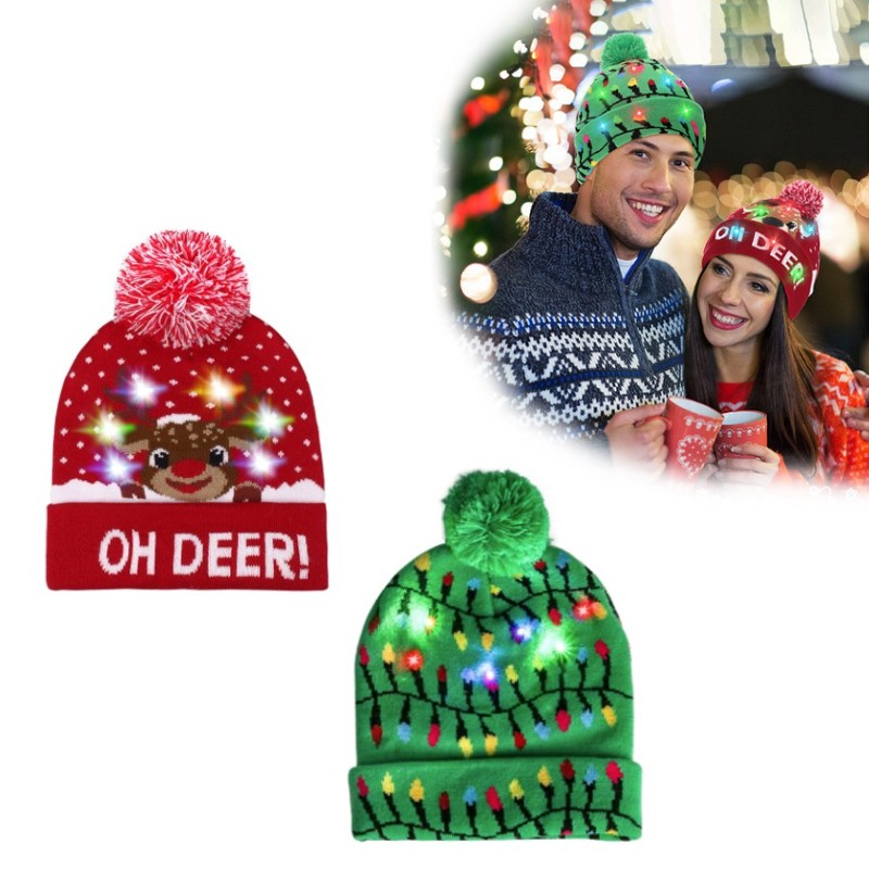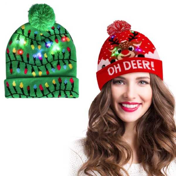 Caciula de Craciun cu LED-uri, marime universala Cauti un accesoriu unic si dragut de Craciun? Tu esti cel care innebuneste dupa toate lucrurile de Craciun? Daca da, atunci nu trebuie sa lipseasca aceste caciule super dragute si adorabile din colectia ta! Au incorporate beculete LED, pentru o atmosfera de Craciun si mai completa! Beculete LED multicolor incorporat Pot fi pornite si oprite Marime: 20 x 20 cm Material: Acril, tricotat Modele disponibile: rosie cu ren Ohh Deer verde cu beculete