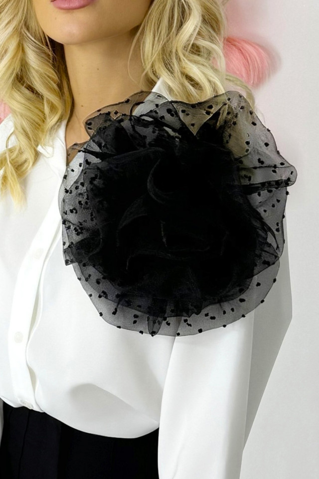Camasa office Alizee, cu accesoriu floral imprimat cu picatele, din organza, Marime universala Fiecare petală, o poveste; fiecare purtare, o virtute! Caracteristici camasa : - lungime lunga cu tipar drept, asimetric si inchidere cu nasturi - guler cu revere scurte - croiala cu umerii buretati - maneca lunga cu manseta si nasture - accesoriu floral oversize din organza, detasabil - model prezent in mai multe variante cromatice - compozitie material: 100% polyester - marime universala compatibila cu marimile S sau M Imaginile Fashionforyou au caracter informativ, iar nuanta, tonul si intensitatea culorii pot varia in functie de monitor/ecran telefon.