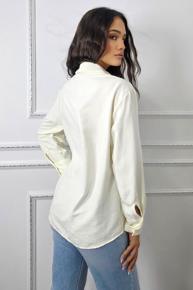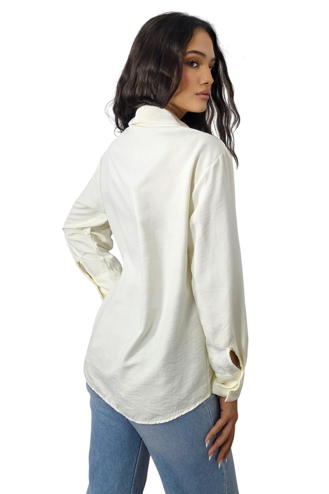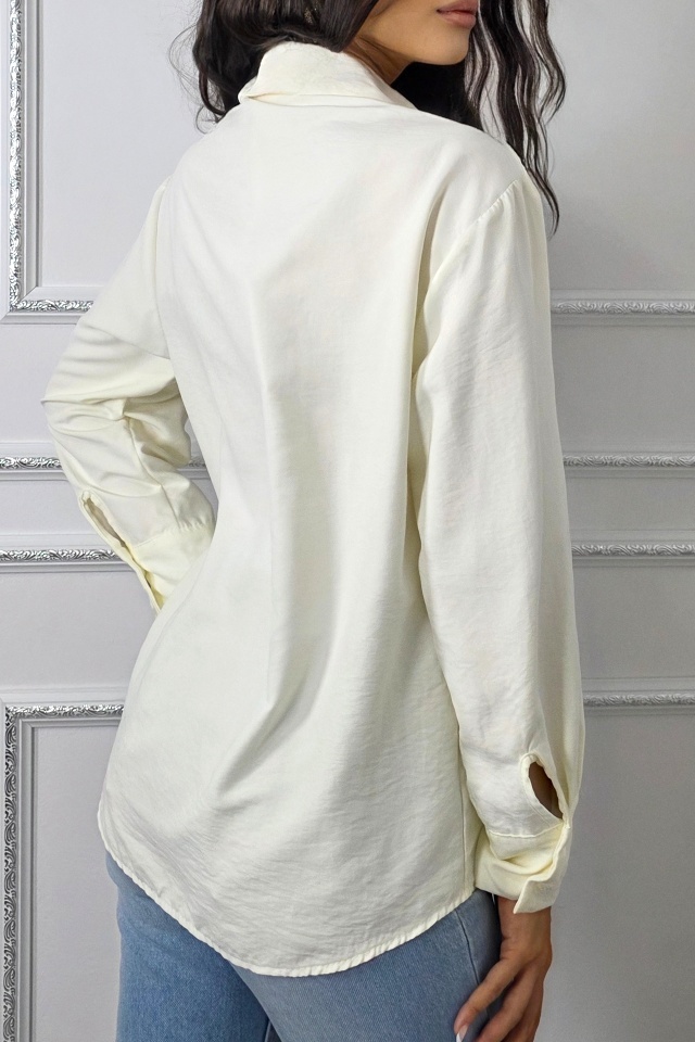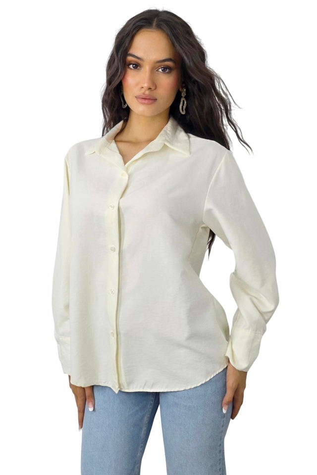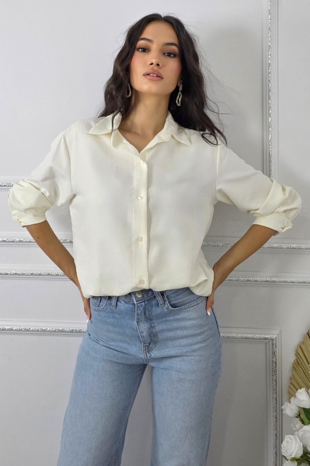 Camasa office de dama Bethany, cu nasturi si maneca lunga, Alb, Marime S/M