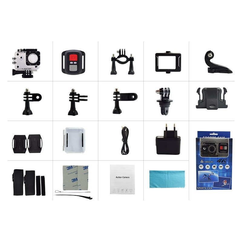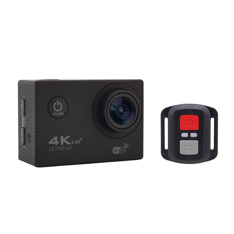 Camera de Actiune cu Filmare 4K UltraHD la 30 fps-uri pe secunda R12H si cu o capacitate submersibila de pana la 30m adancime. Camera de actiune are telecomanda ce se conecteaza la o frecventa de 2.4G si este aflata la incheietura mainii in forma de ceas, ce permite o utilizare usoara si placuta a dispozitivului. Nemaifiiind nevoie de setarea functiilor din camera, telecomanda va ajuta sa porniti/opriti filmarea in timp ce aceasta este asezata pe casca sau in alte locuri greu accesibile. Dimensiune display : 2.0 inchi Camera Foto: 16.0MP cu Senzor CMOS de 170º si un unghi Wide Angel Suport Card MicroSD Memorie: 32GB, 16GB, 8GB Rezolutii : 4K UltraHD 3040x2160 @30fps, 2.7k 2788x1520 @30fps, 1080P 1920x1080 @60fps, 720P 1280x720 @120fps; Rezolutie Imagine : 16.0MP, 12.0MP, 8.0MP, 5.0MP, 2.0MP Functionalitati: Telecomanda Ceas 2.4G, Waterproof 30m adancime, Conectivitate WiFi Hotspot; Acumulator Li-Ion 900mAh 3.7V detasabil Dimensiuni aparat: 5.9x4.1x2.9cm Accesorii incluse in pachet: carcasa waterproof, suport bicicleta, clip multifunctional, clip camera, baza pentru casca, bandaje, laveta microfibre, stickere 3M, manual de utilizare