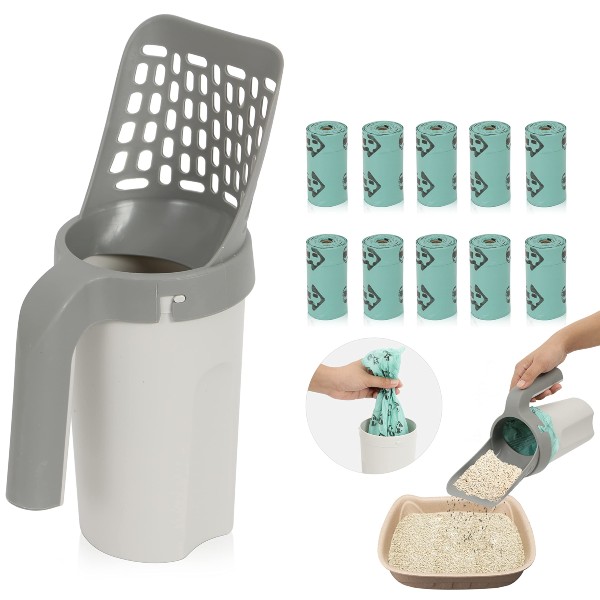 Cana cu lopetica, pentru curatarea litierei cu saci igienici Cea mai eficienta metoda de a curata litiera pisicii este acum la indemana ta! Pastreaza litiera mereu curata cu cea mai inovatoare paleta. Ceea ce o face foarte diferita fata de cele pe care le utilizai inainte este faptul ca are sacul incorporat care face ca toaletarea litierei sa fie mult mai usoara. Paleta filtreaza nisipul iar sacul incorporat captureaza doar mizeria. Partea unde se aseaza sacul este suficient de mare astfel ca indiferent de cantitatea din litiera, aceasta se va putea curata perfect. Potrivita pentru orice tip de litiera. Formatul paletei ajuta mult, deoarece nu iti va cadea nimic pe langa ci doar in saculetul destinat. Primul pas ar fi punerea rolei de saci in spatiul destinat Al doilea este tragerea lui prin cos si asezarea pe gura canii Al treilea pas ar fi de a fixa paleta pe cos. Cea mai eficienta metoda de a curata litiera pisicii! Pastreaza litiera mereu curata, simplu si usor de folosit! Ceea ce o face foarte diferita fata de alte sisteme de curatare este faptul ca are sacul incorporat care face ca toaletarea litierei sa fie mult mai usoara si fara sa mai folosesti manusi pentru a nu te murdari. Partea unde se aseaza sacul este suficient de mare astfel ca indiferent de cantitatea din litiera, aceasta se va putea curata perfect. Potrivita pentru orice tip de litiera. Formatul paletei ajuta mult, deoarece nu iti va cadea nimic pe langa ci doar in saculetul destinat. Paleta filtreaza nisipul iar sacul incorporat captureaza doar mizeria Este foarte usor de folosit! in doar trei pasi simpli vei avea si litiera curata, dar si paleta. Spatiul de depozitare al saculetului permite tragerea lui prin spatiul recipientului Dispozitiv curatare litiera pisici Dimensiune: 12 x 29 cm Paleta vine fara saci igienici Pot fi utilizati saci menajeri 5 L / 10 L Pungi igienice, biodegradabile pentru animale - nu sunt incluse Este potrivit orice sac pentru animale Pachetul include: cana cu lopatica pentru litiera 10 role a cate 15 saci igienici