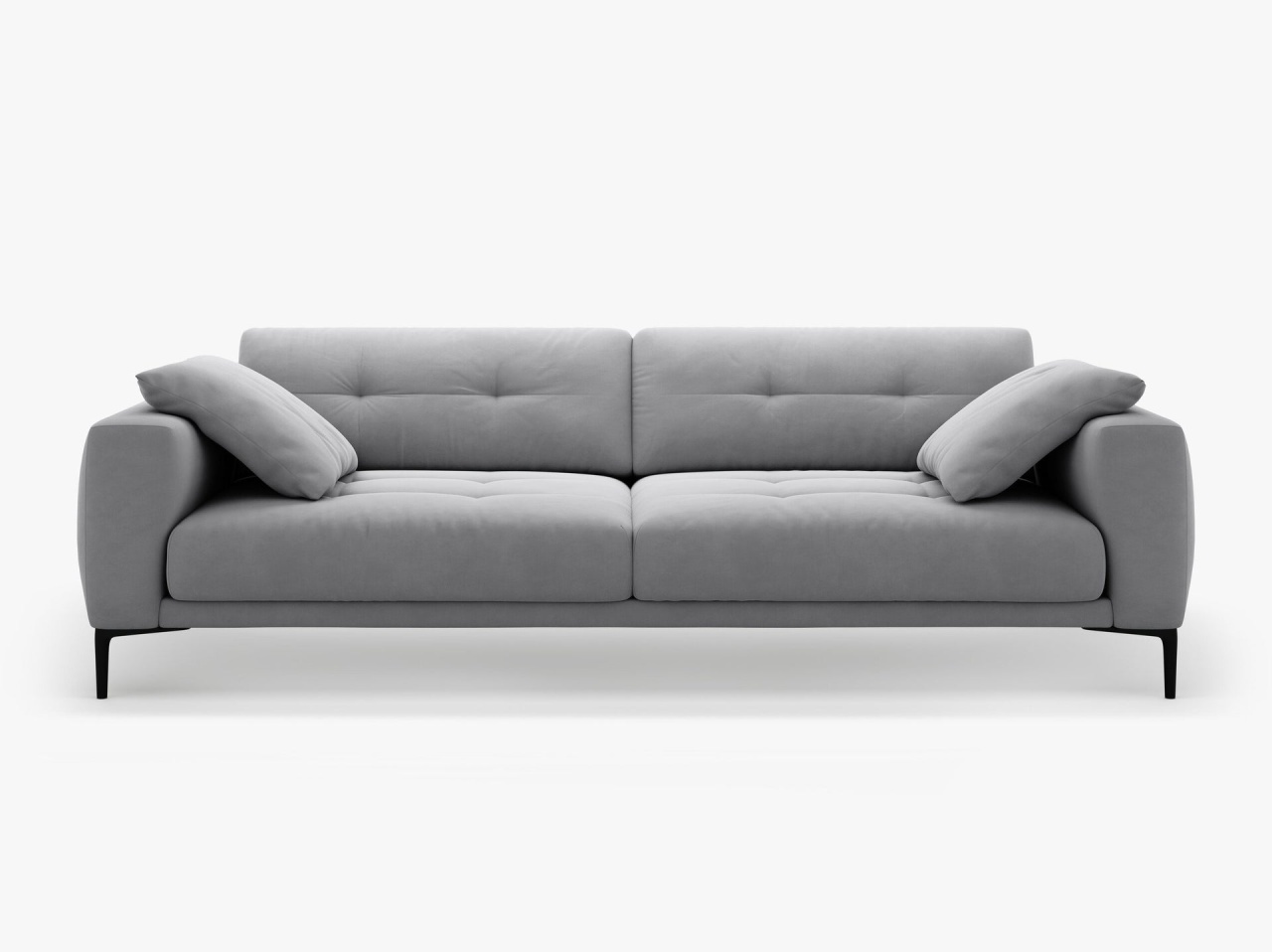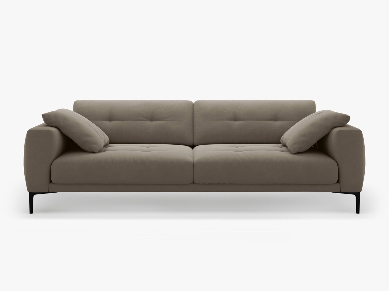 Canapeaua Bemy este exemplul perfect de eleganță și simplitate. Cu un design fix, aceasta aduce un plus de rafinament oricărui living. Liniile curate și formele minimaliste fac din Bemy o piesă de mobilier versatilă, potrivită pentru diverse stiluri de decor. Tapițeria de calitate superioară, disponibilă într-o gamă variată de culori, completează aspectul său elegant. Dimensiuni: Lungime: 230 cm Adâncime: 102 cm Adâncime șezut: 80 cm Înălțimea totală: 86 cm Detalii tehnice: Material tapițerie: catifea (Salvador) Culoare: personalizabil Greutate: 72 kg Produsul este personalizabil, culoarea produsului și materialul se aleg pe baza paletarelor. Prețul poate suferi modificări în funcție de materialul ales. Produsul nu este montat, este destinat pentru auto-asamblare. Instrucțiunile de montaj vin în colet.