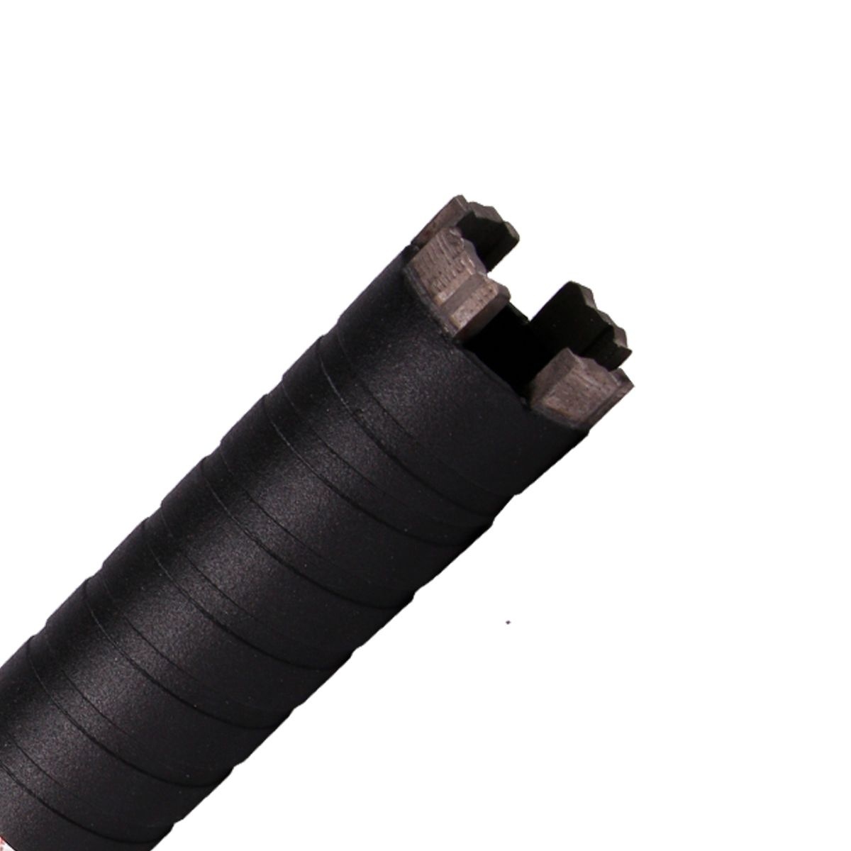 Carota diamantata RS-TX segment turbo pt. beton armat diam. 42 x 300 (mm) - Premium - DiStar Calitate : Premium - calitate foarte buna - durata de exploatare foarte buna Pentru : beton si beton armat (ranforsari de pana la max. Ø20mm) Gaurire : uscata sau cu apa Utilizare: masini de carotat Descriere: Carota diamantată RS-TX este proiectată pentru găurirea de mare viteză a materialelor complexe și durabile, precum betonul armat , în regim uscat (fără răcire cu apă). Utilizează segmenți unici DiaFix cu diamant orientat și dispune de o formă turbo și o legătură productivă pentru a asigura o găurire rapidă și eficientă , în special atunci când răcirea cu apă nu este posibilă. Canelurile speciale de pe corpul carotei ajută la evacuarea eficientă și rapidă a prafului și a materialului rezultat. Viteză și durabilitate excepționale la găurirea betonului armat , reușind chiar să taie armătura pe lungime fără blocare (demonstrat pe beton de grad B45). Durată de viață ridicată de până la 15 metri liniari de găurire (depășind semnificativ durata de 5-7 metri obișnuită). Carota este destinată utilizării pe mașini de găurit manuale cu micro-percuție. Conexiune: filet 1 ¼” UNC Diametru carota: 42mm Lungimea activa a carotelor: 300mm Numar segmenti: 4 Viteza de gaurire: 5/6 Durata de viata 4.5/6
